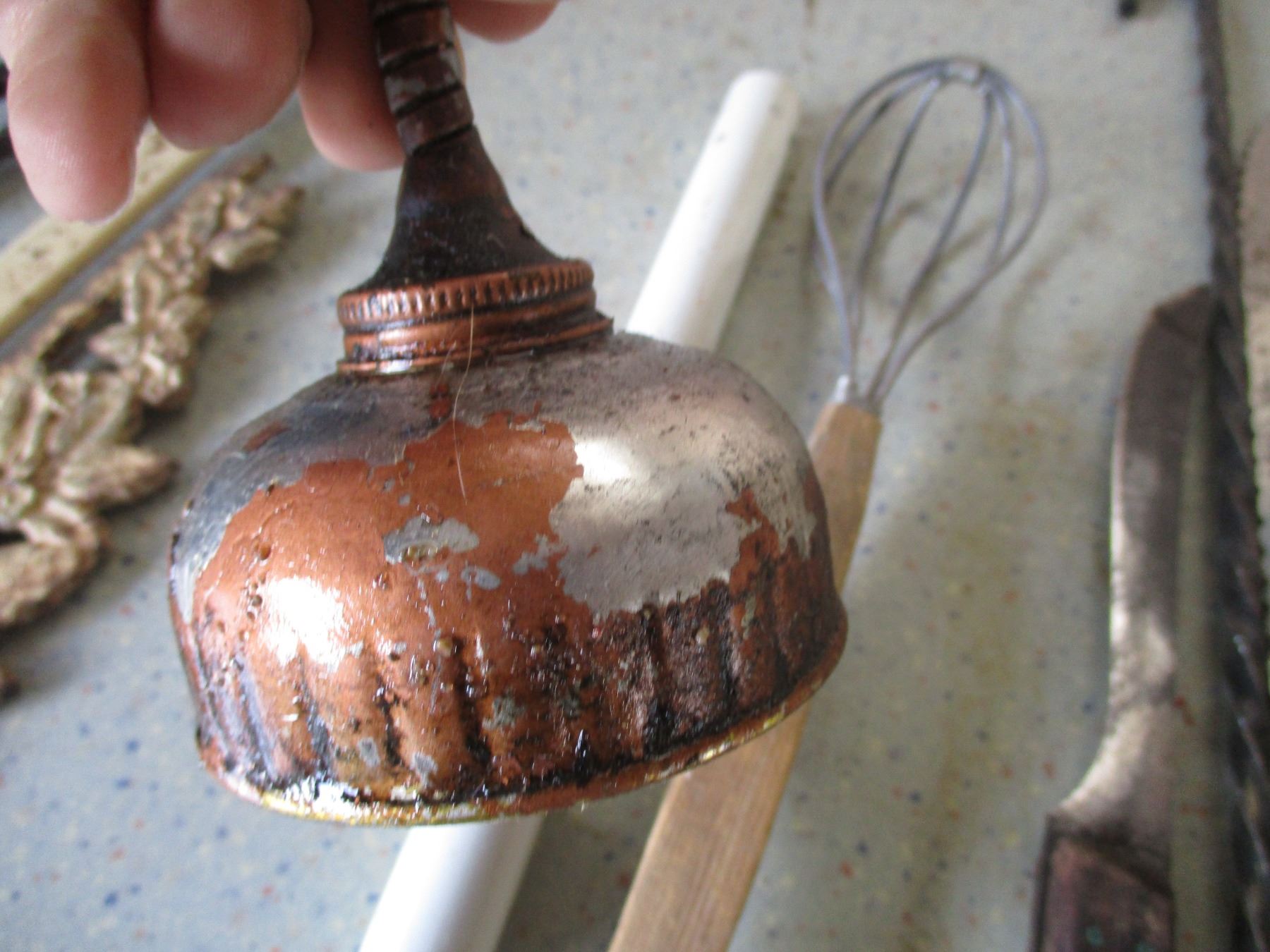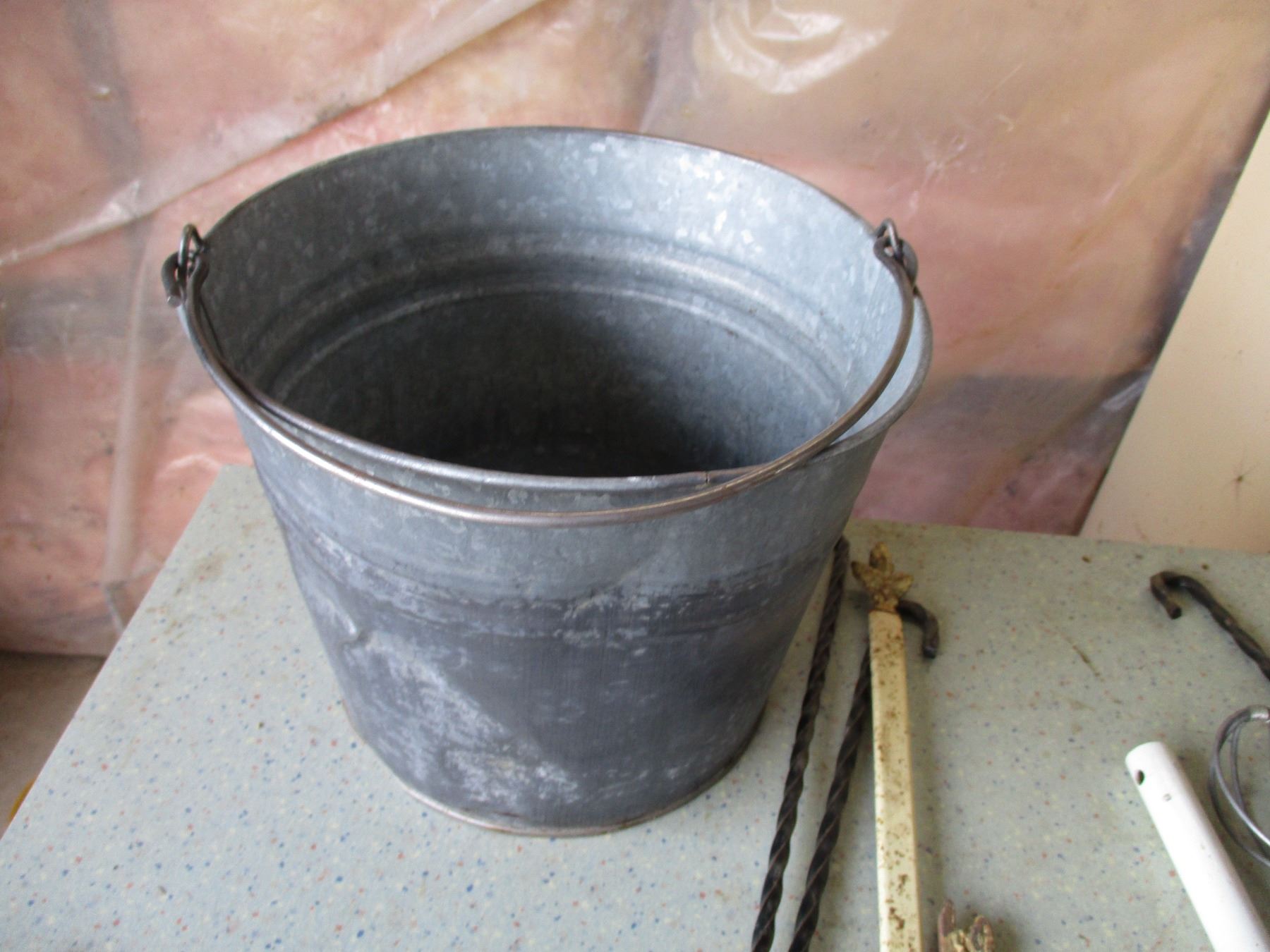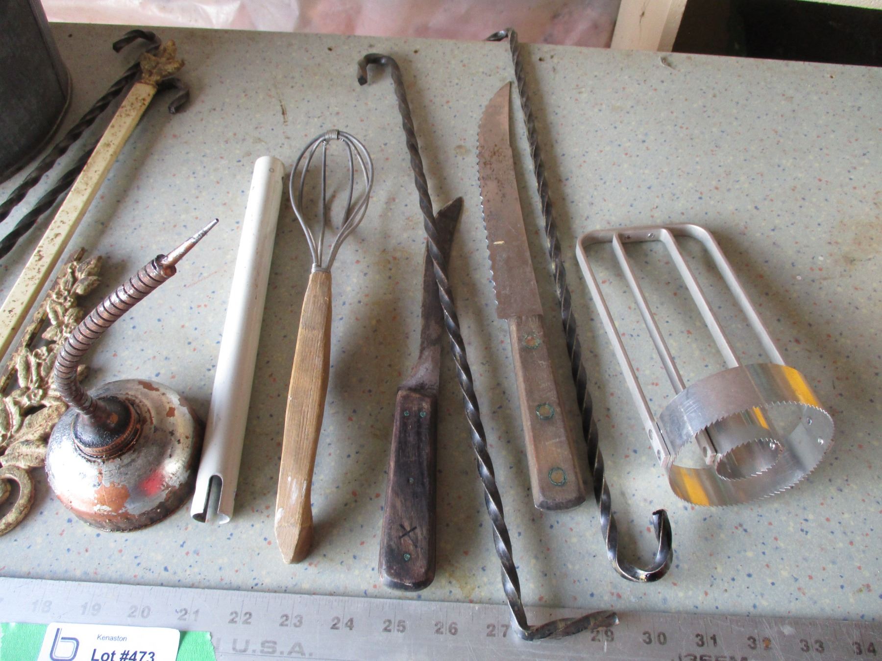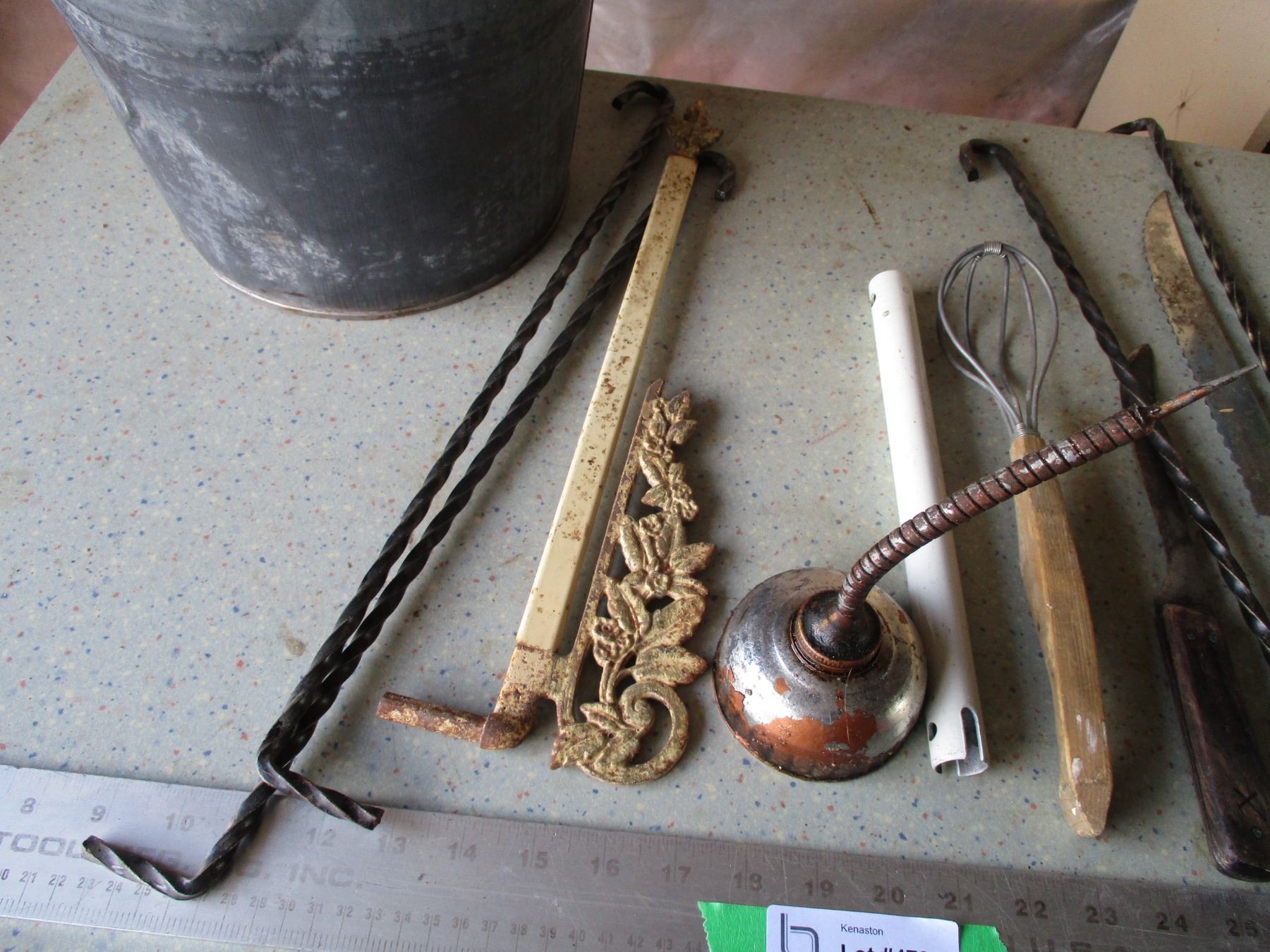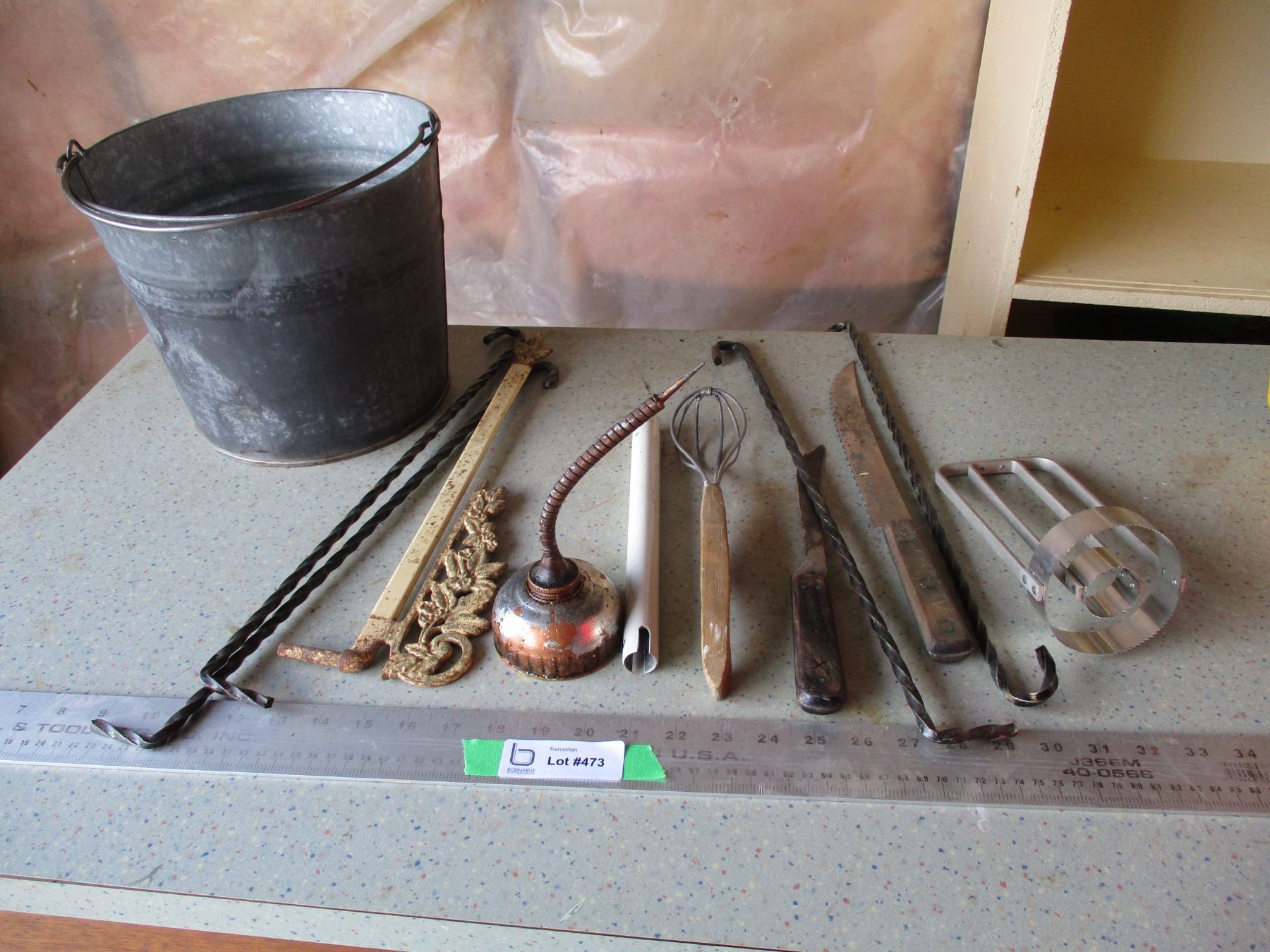 Dough Cutter, Butcher Knives, Misc. in Galvanized Pail