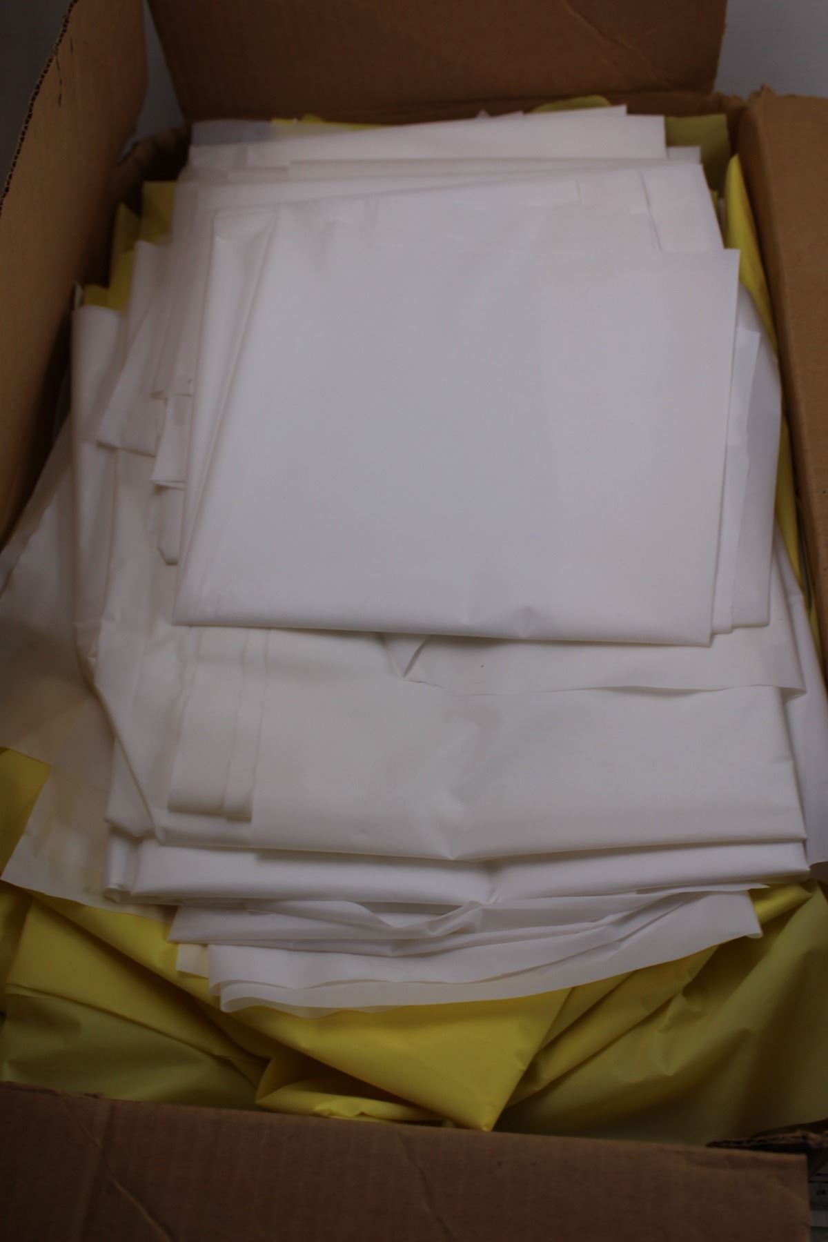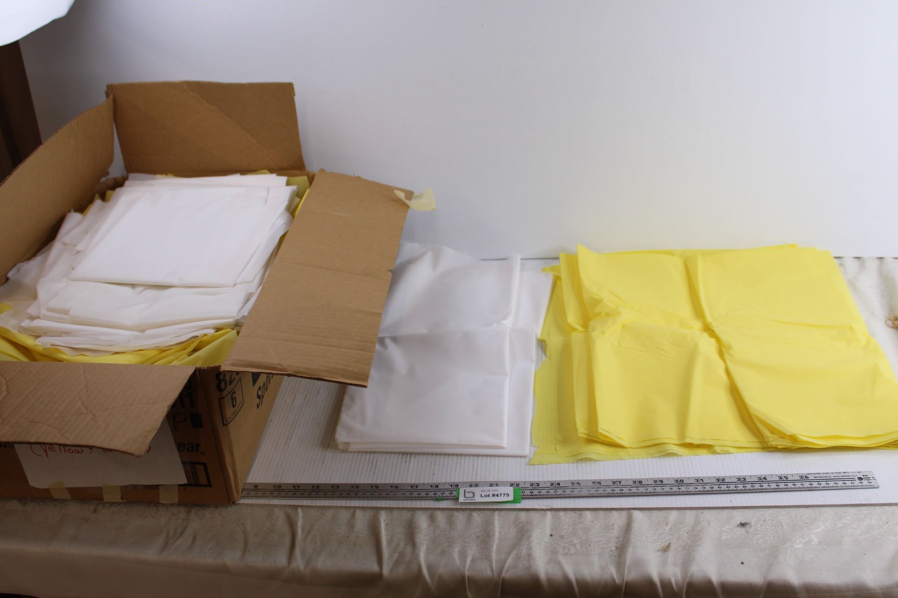 Dozens of White + Yellow Plastic Table Covers/ Runners for Weddings/Parties
