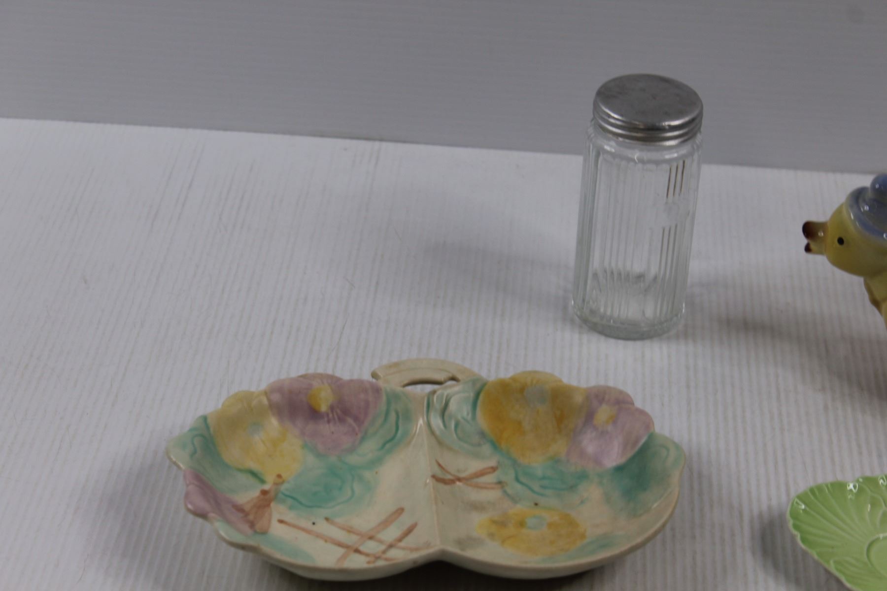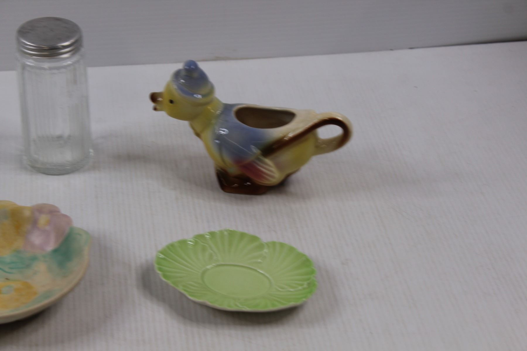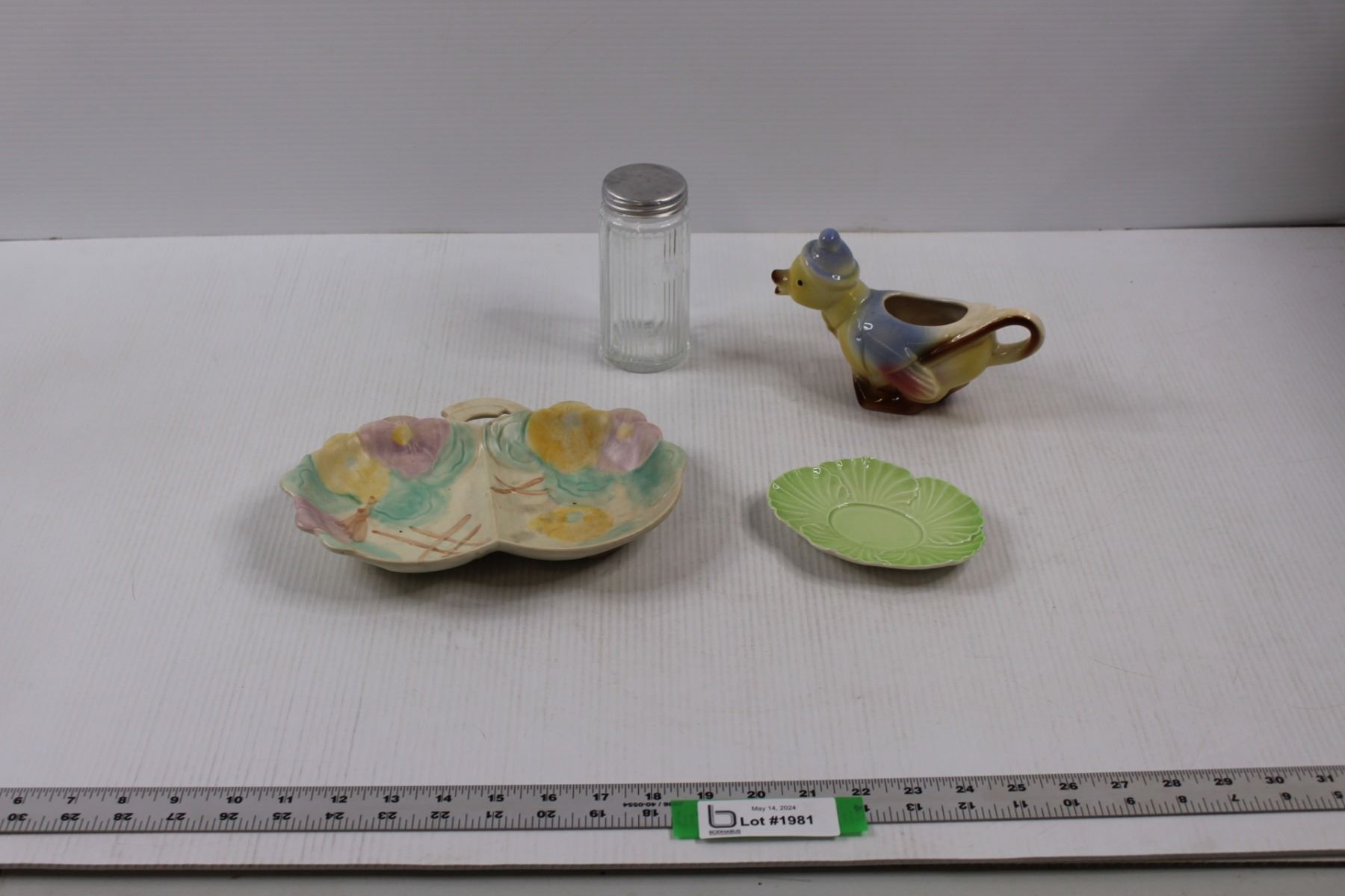 Duck Cream Pitcher, (2) Decorative Dishes & Glass Jar w/Lid