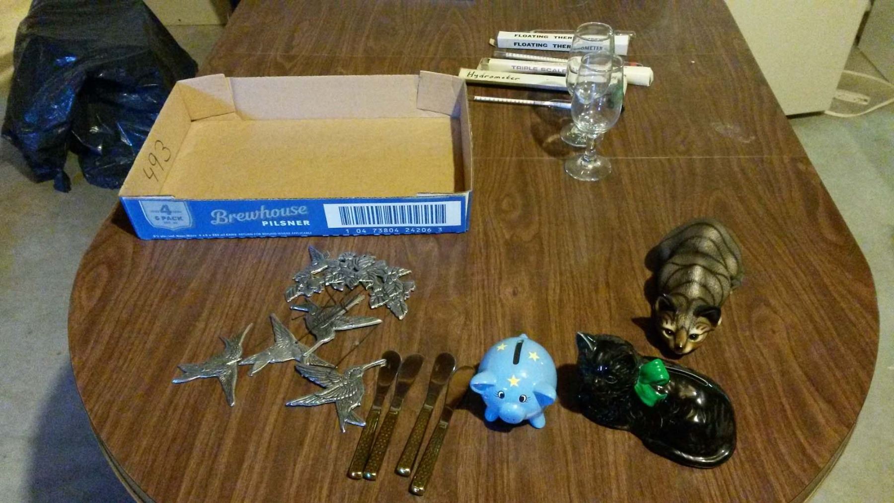 Ducks Unlimited Glasses (2), Money Banks (2), Thermometers, Butter-knives, Misc.