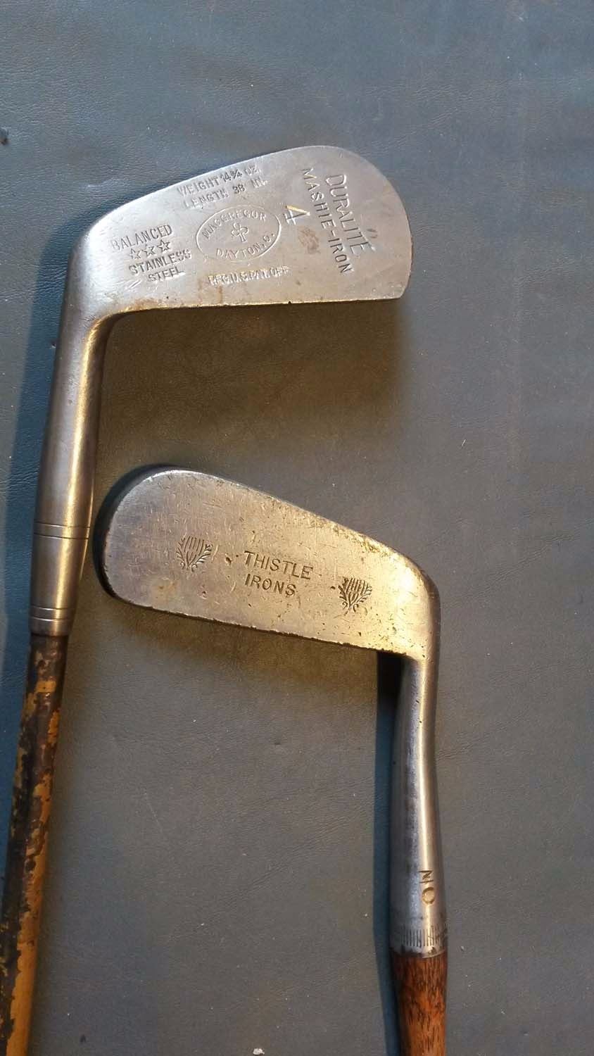 Duralite Iron #4, Thistle Irons Golf Clubs Both With Wooden Shaft
