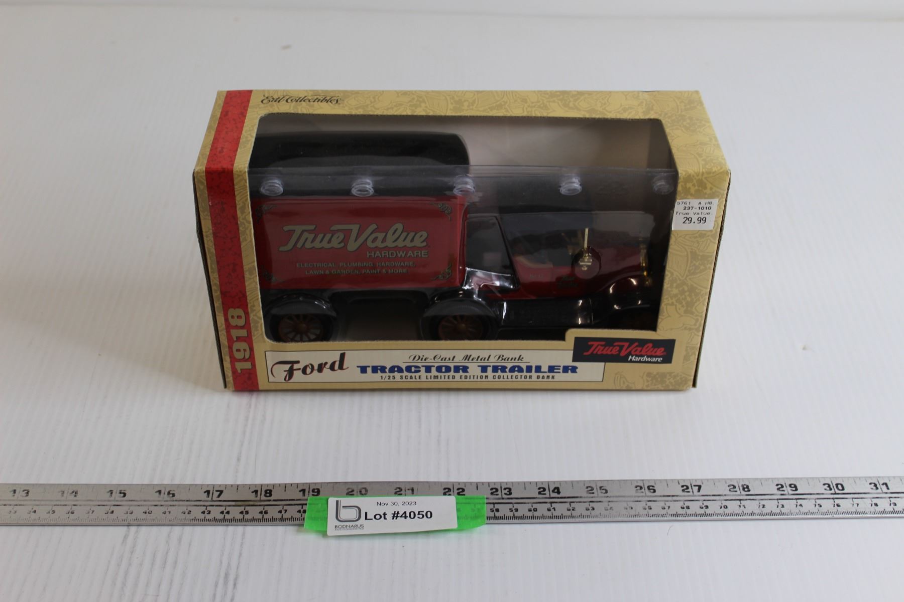 ERTL Collectible Ford Tractor Trailer Collector Metal Bank - 1/25