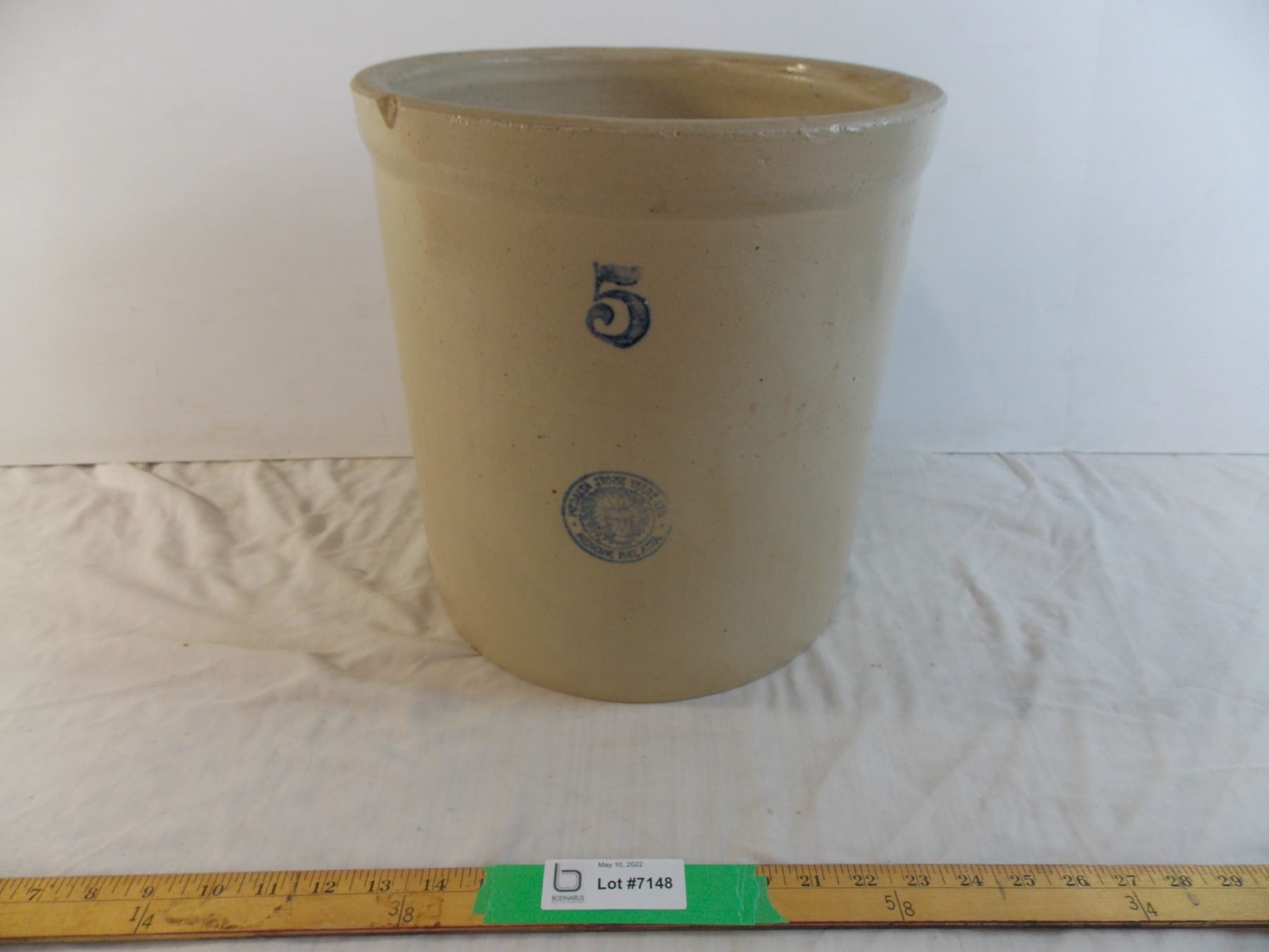 Early Medalta Stoneware (Indian stamp) 5 Gal Crock (small chip)