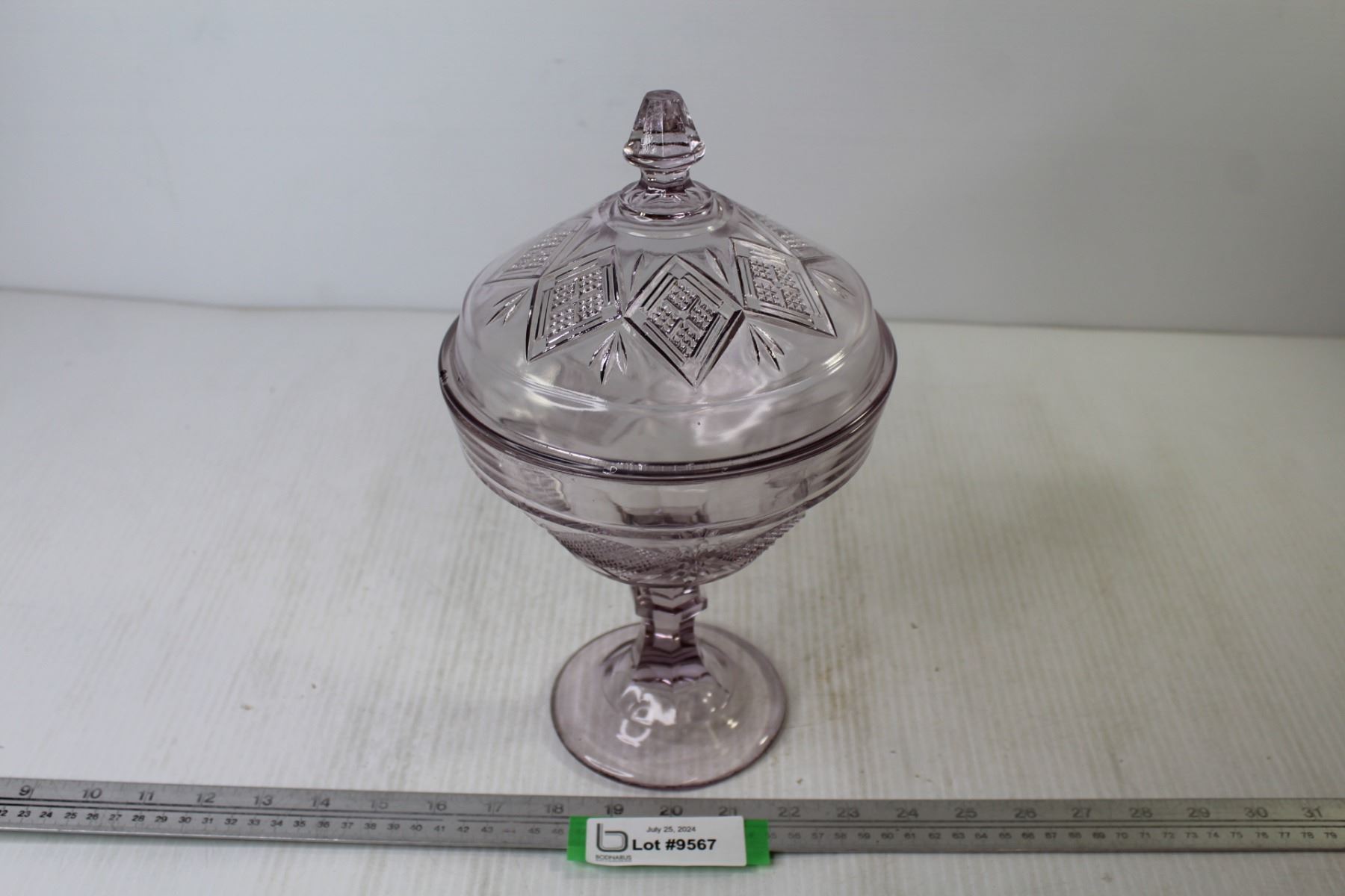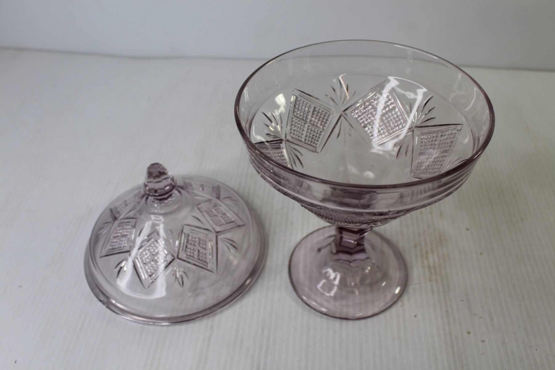 Early Purple Pressed Glass Covered Dish (minor rim chips)