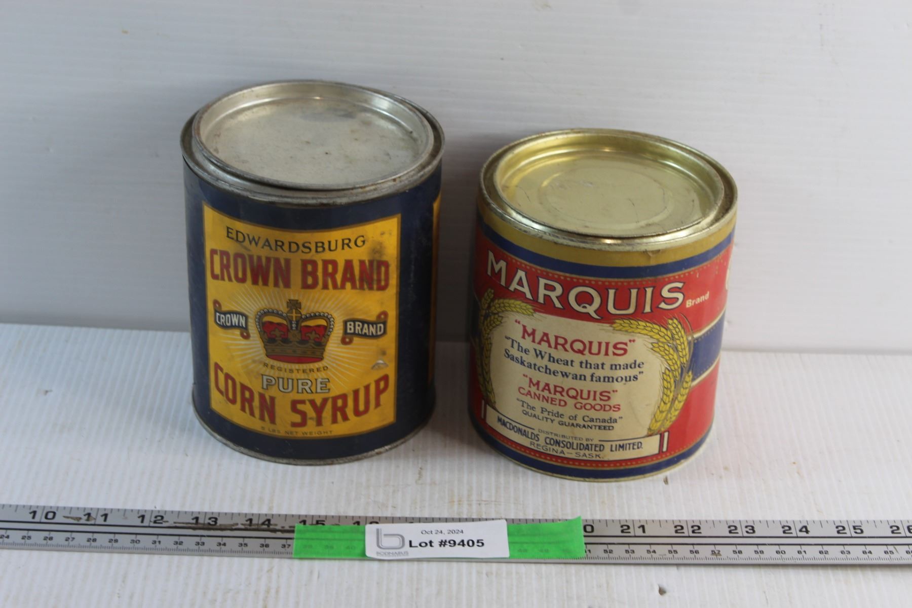 Edwardsburg Corn Syrup and Marquis Canned Goods Vintage Tins