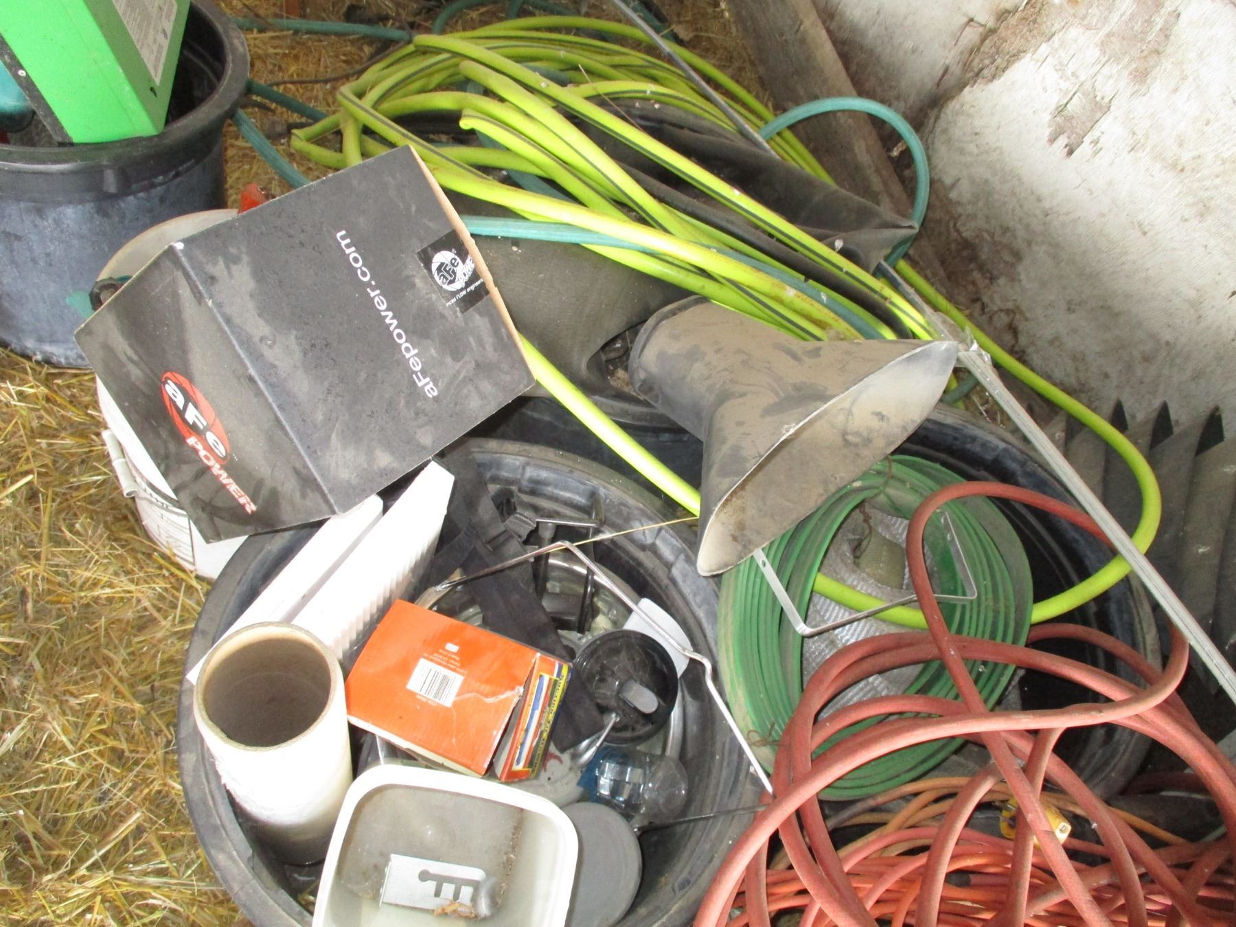 Electric Fencers, Water Hose, Air Hose, Buckets, Misc.
