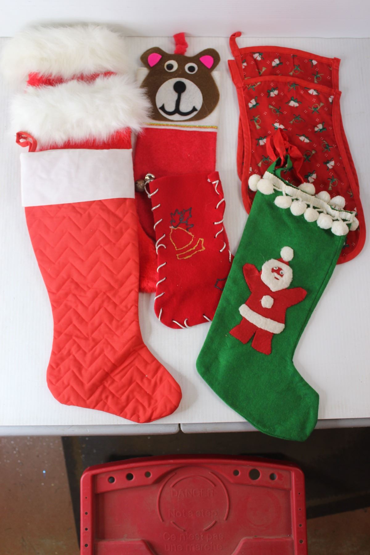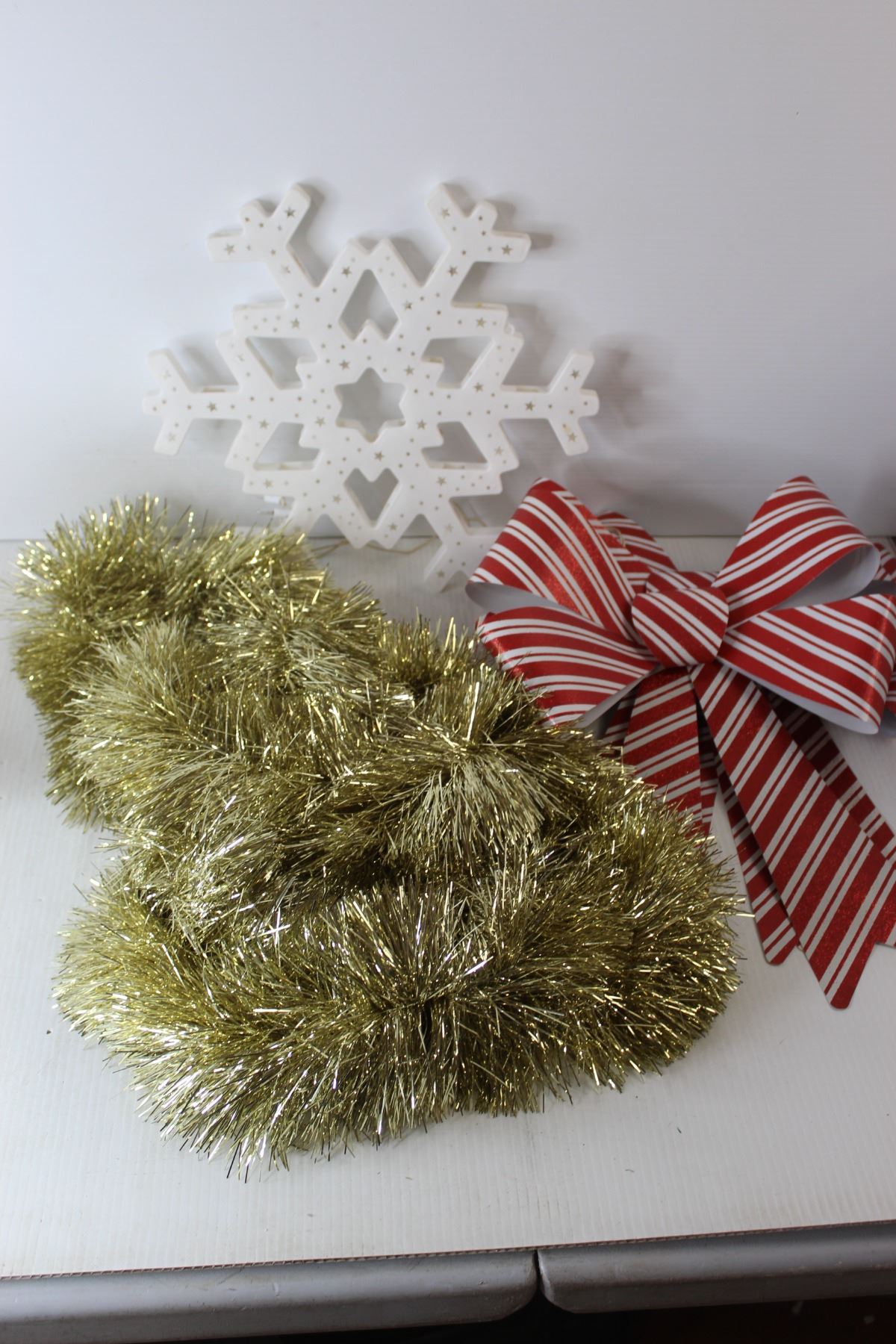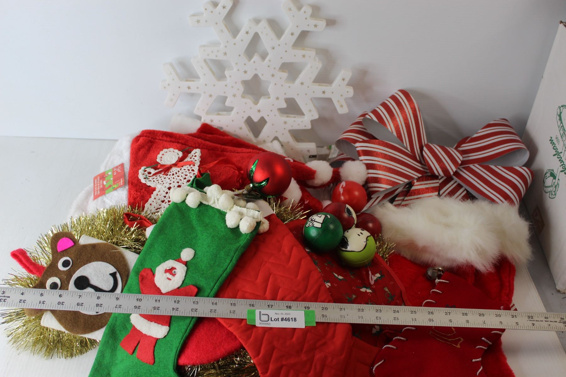 Electric Lighted Star, Garland, Bows, (8) Santa Hats, Christmas Stockings, Snoopy Ornaments