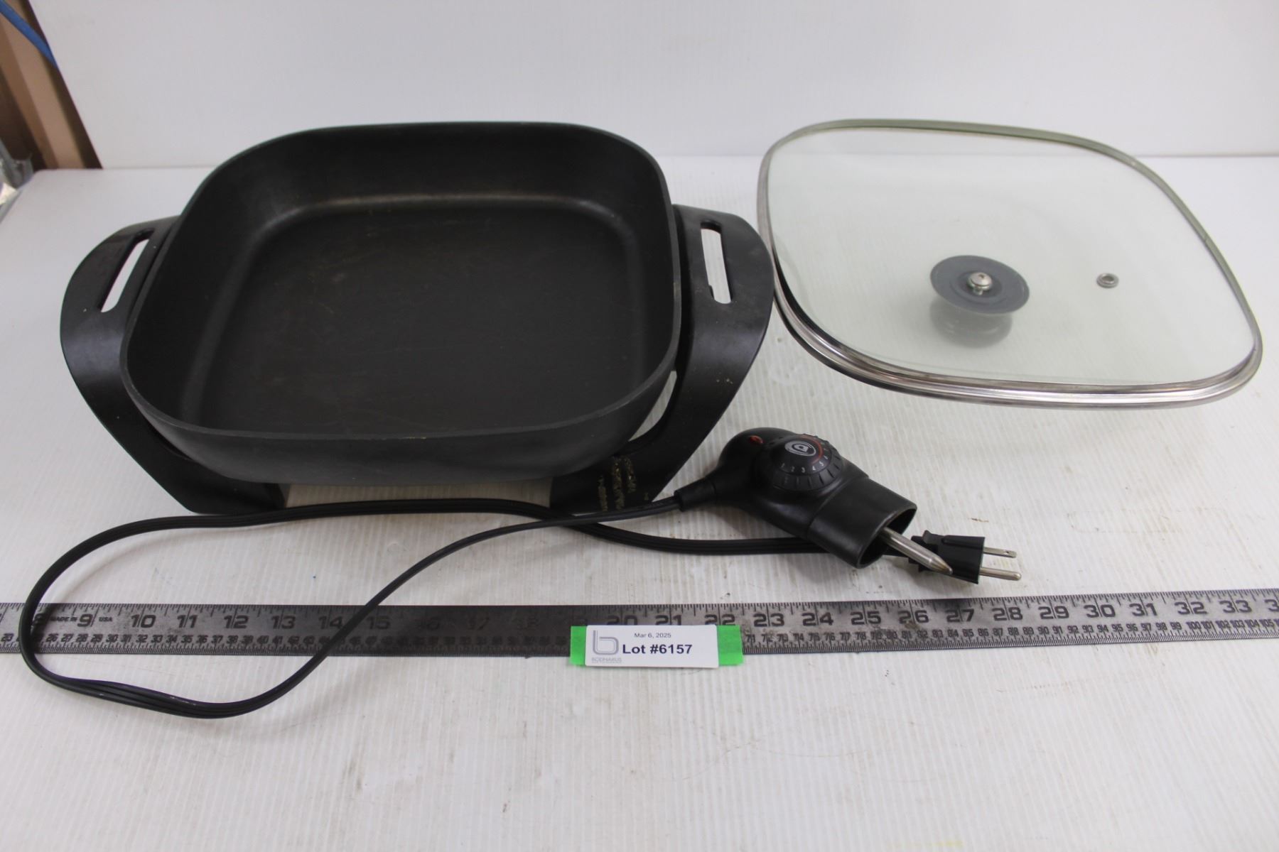 Electric Skillet with Clear Lid and Cord - Powers On - 12" x 12"