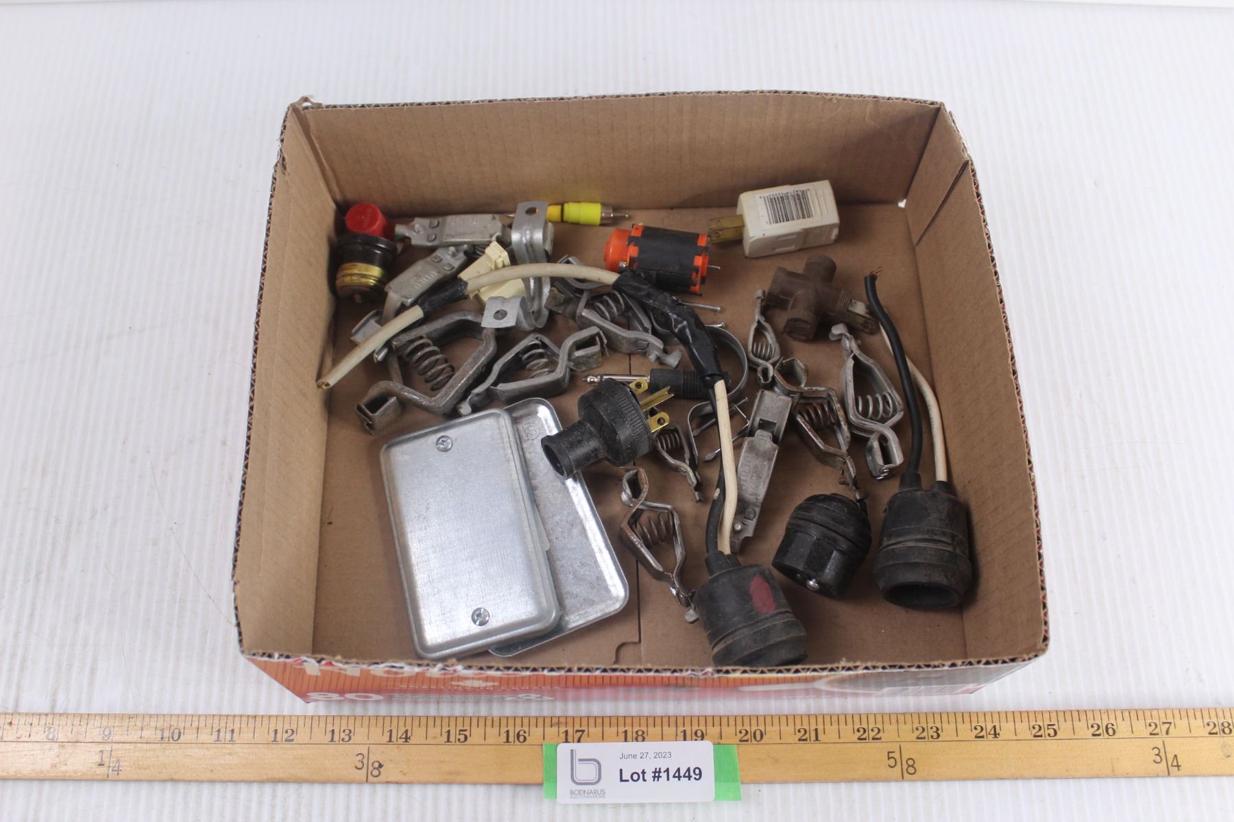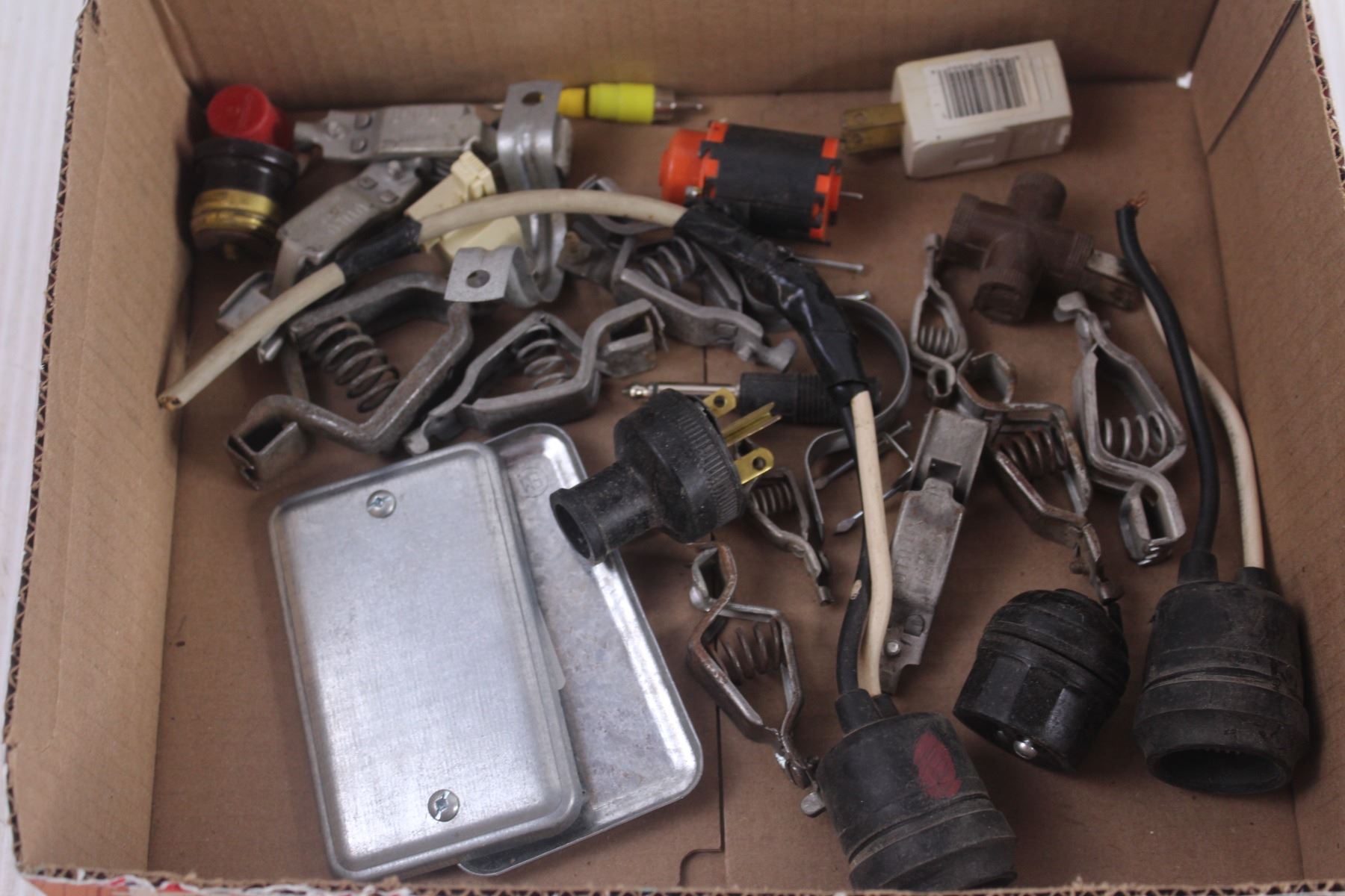Electric parts, pig tails, quick alligator clamps, metal box covers, multi plug ins