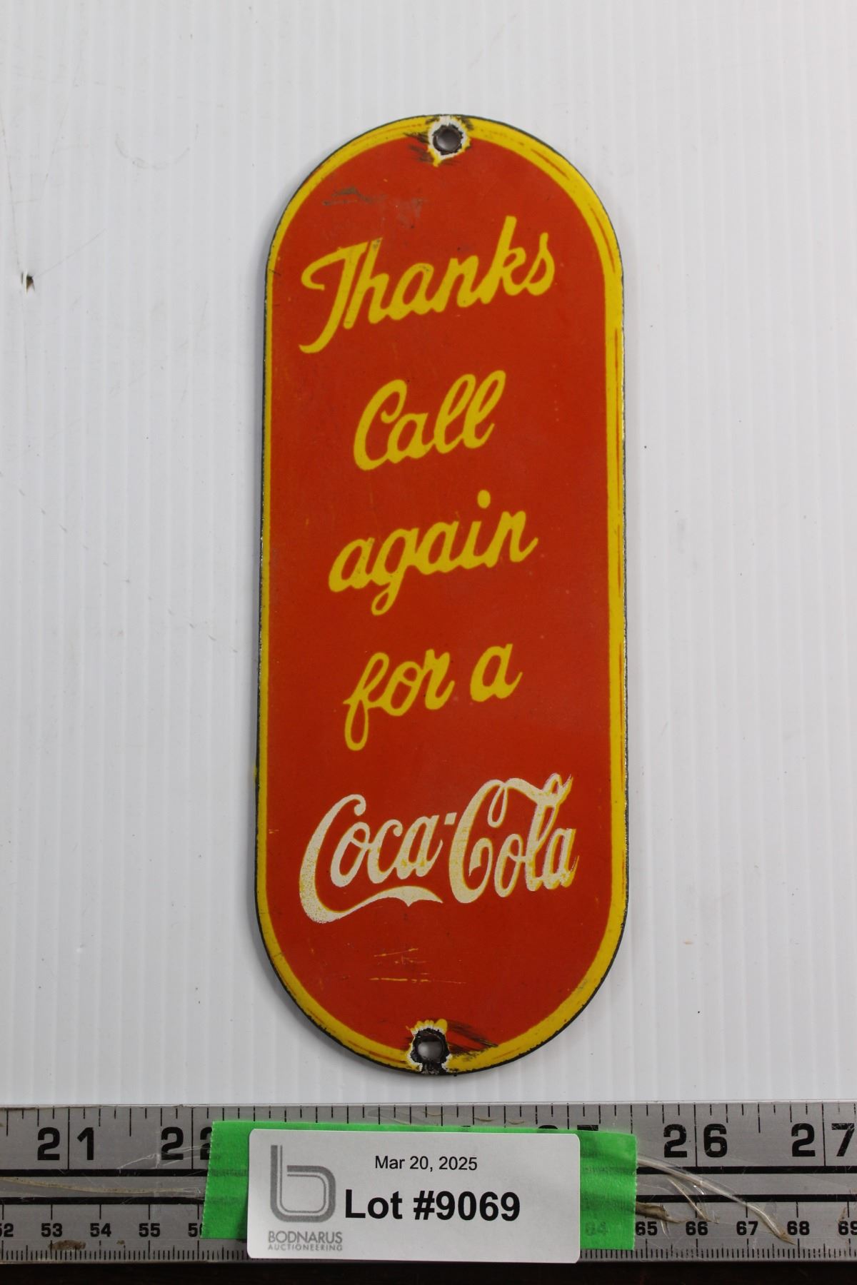 Enamel Coca Cola Palm Press Sign 8'' x 3''