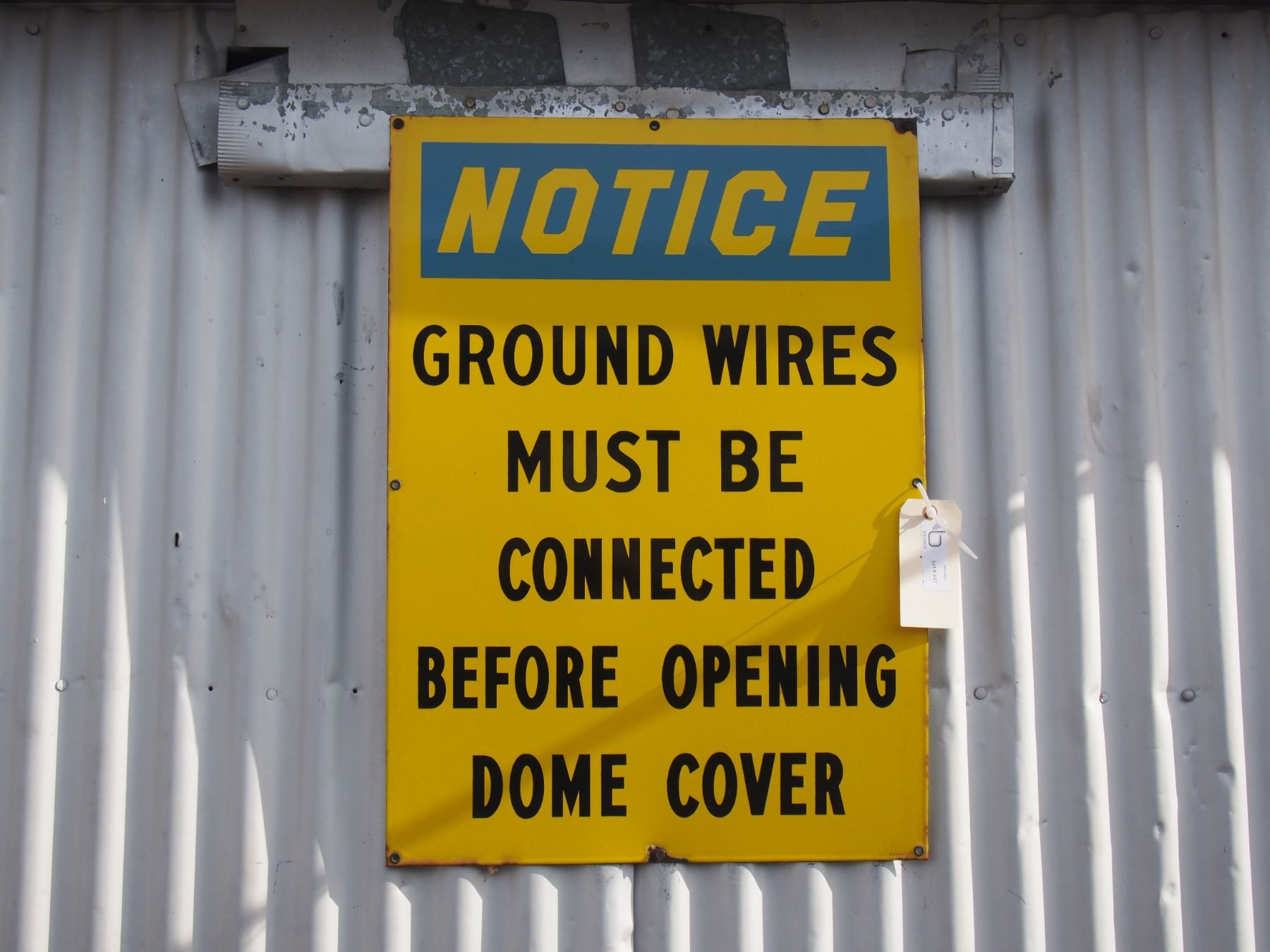 Enamel Notice Ground Wires Sign (20" x 28" long)