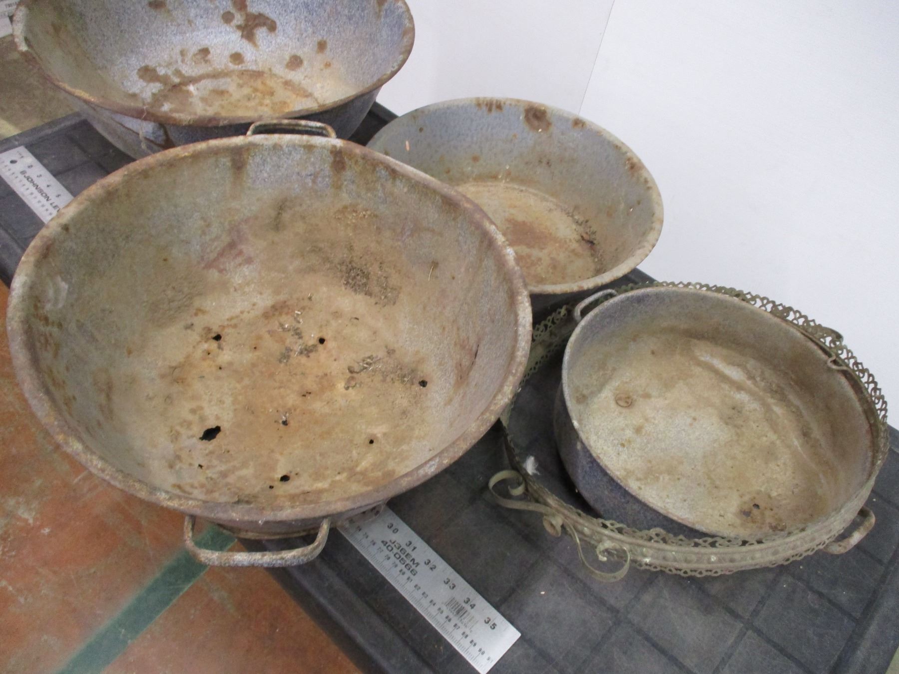 *Enamel dough pans , etc
