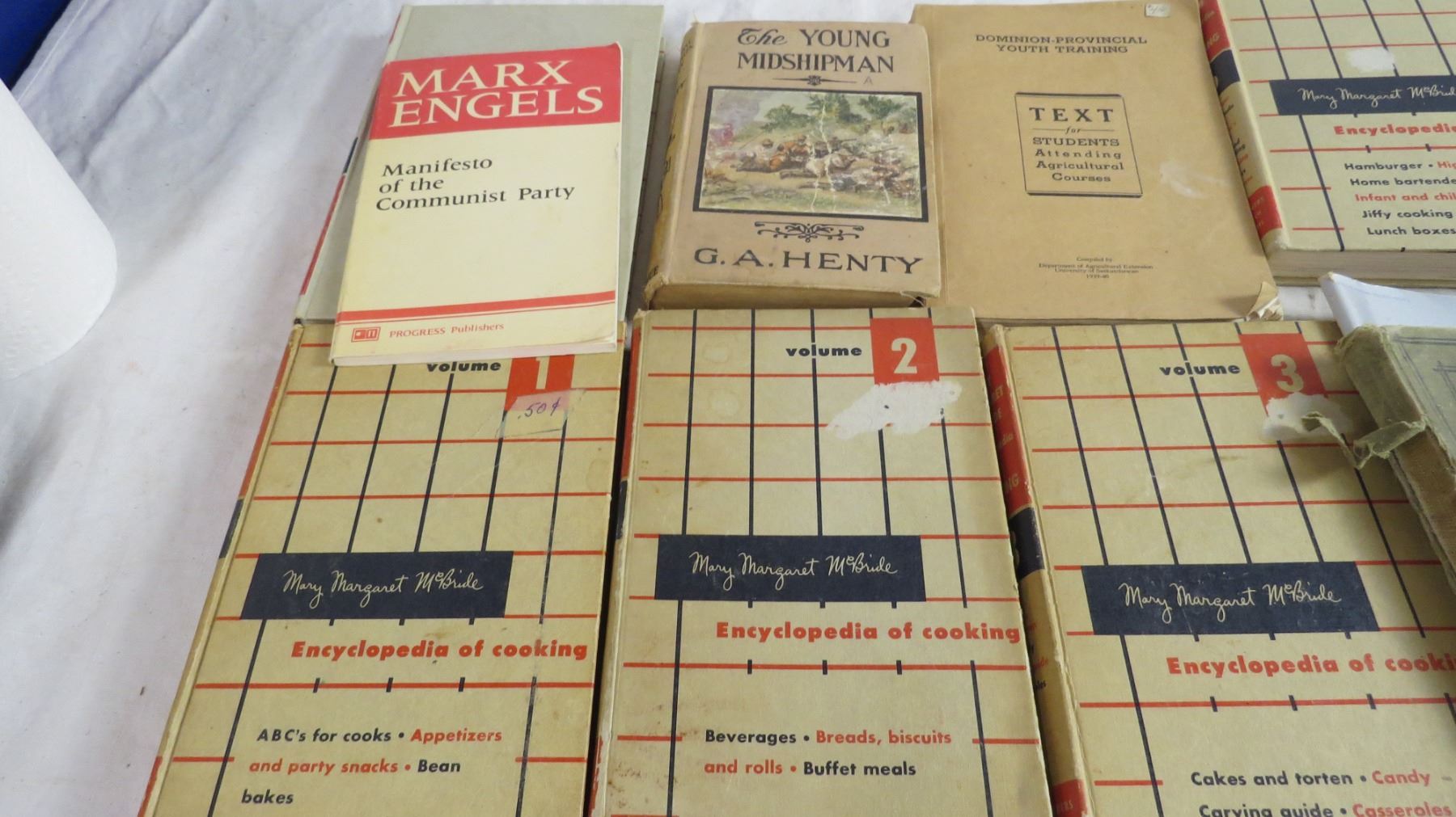 Encyclopedia of cooking + various vintage books