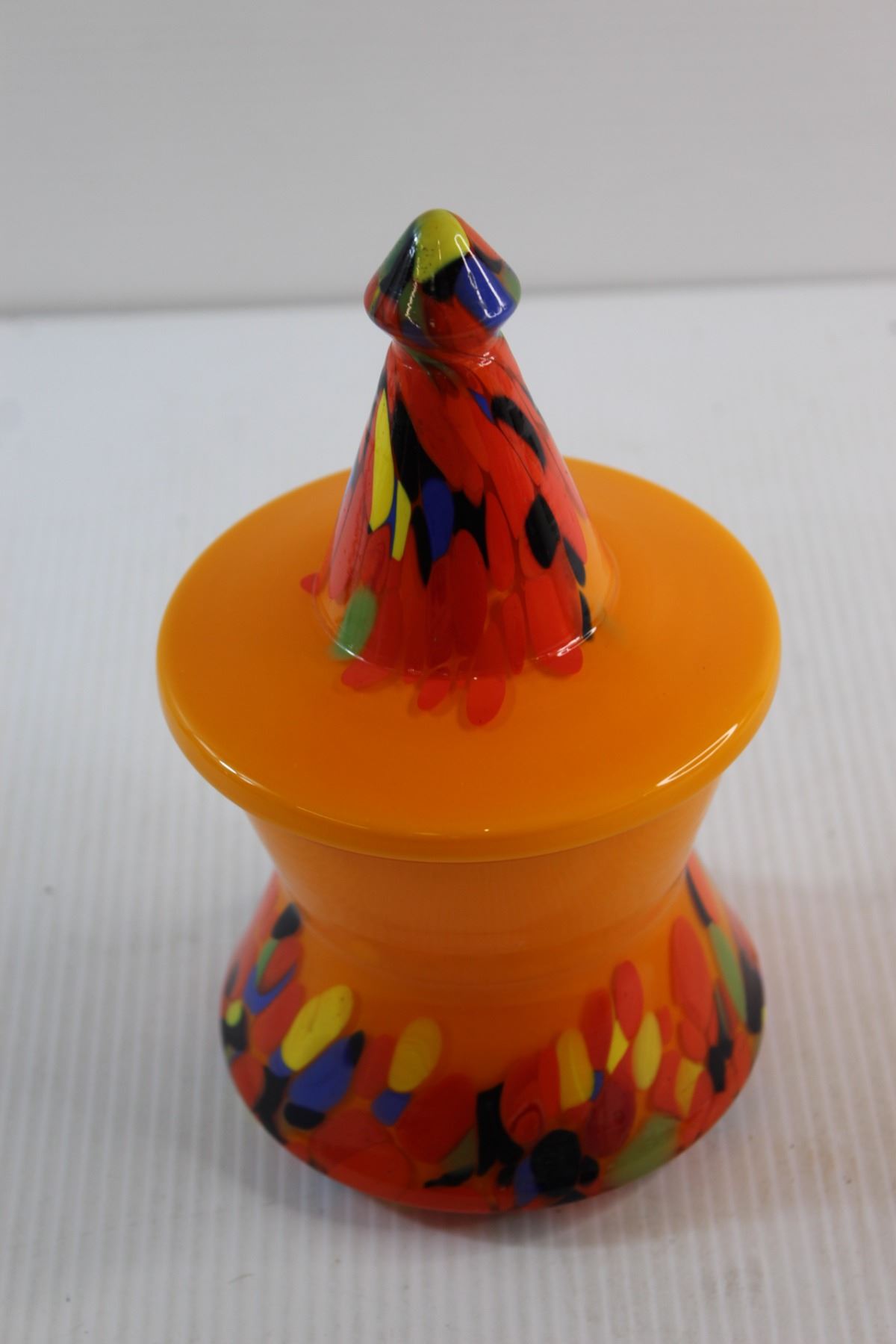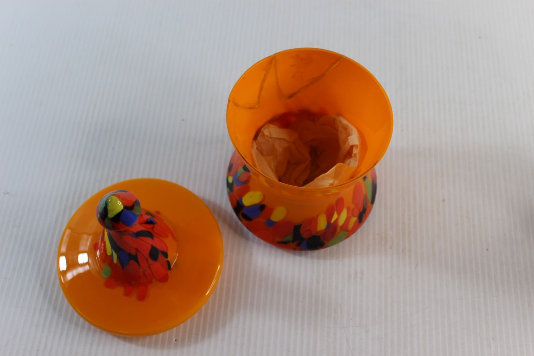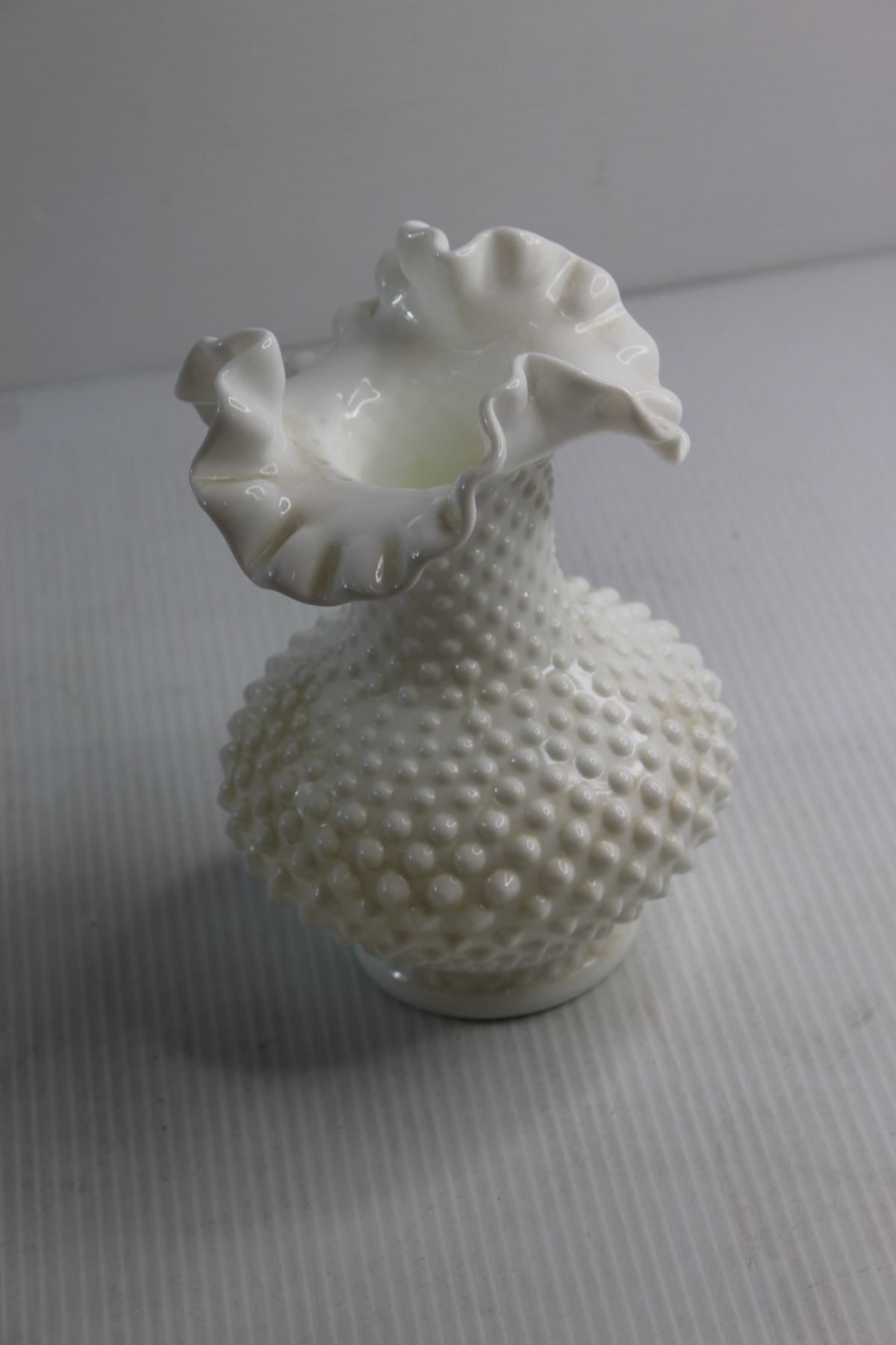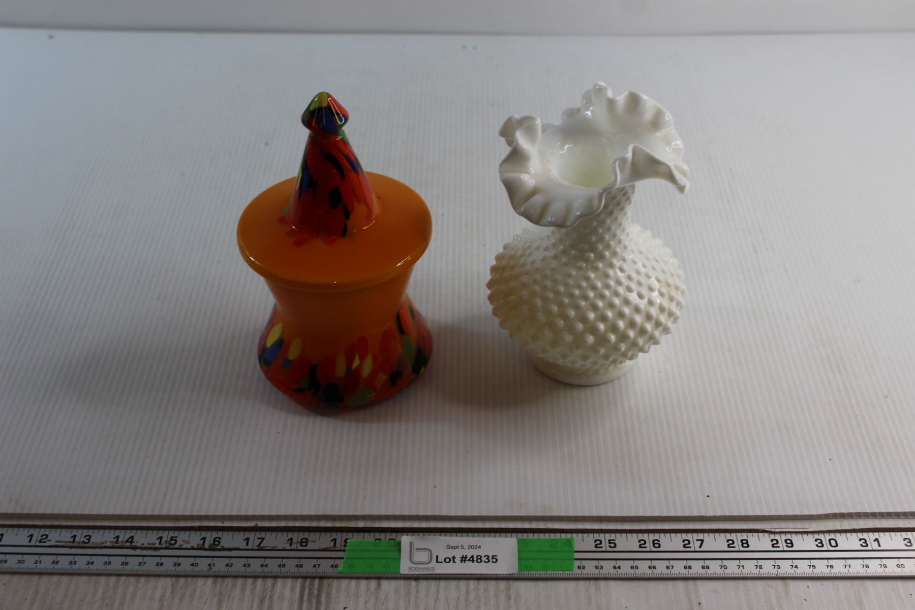 End of Day Glass Candy Jar( Repaired) and Fenton Hobnail Vase