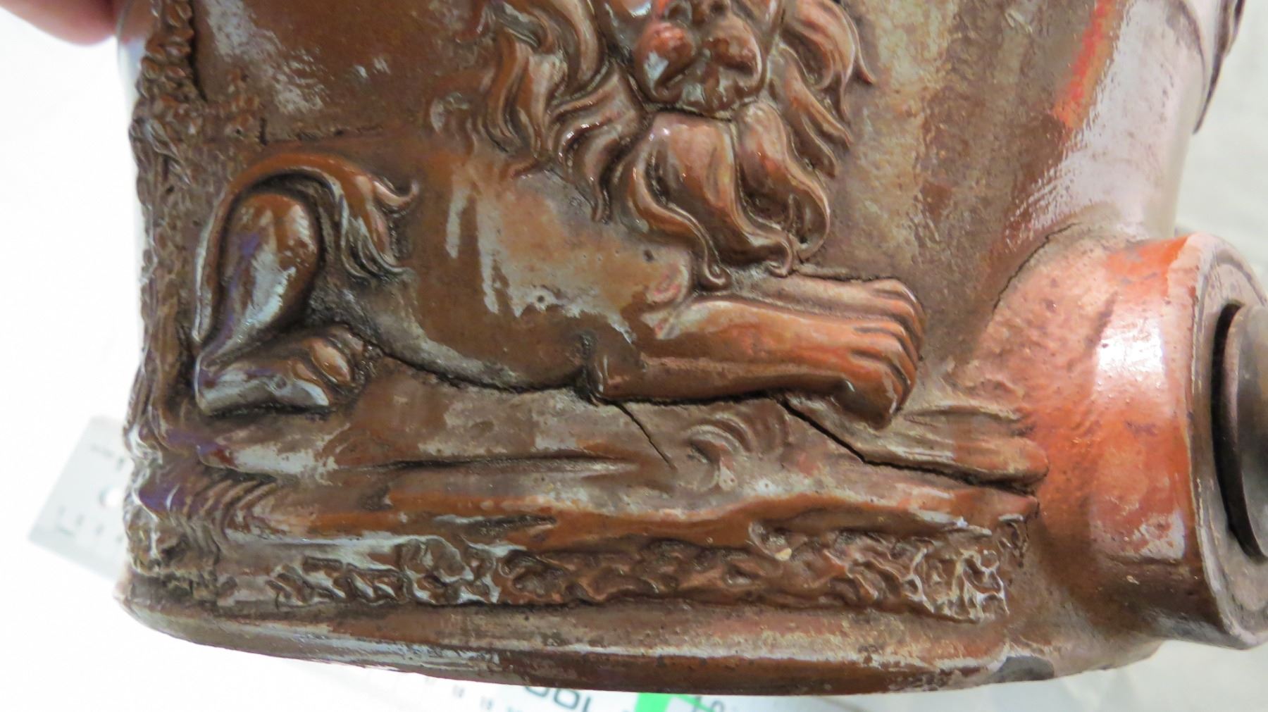 English salt glazed stoneware gin barrel c1840 12.5" tall