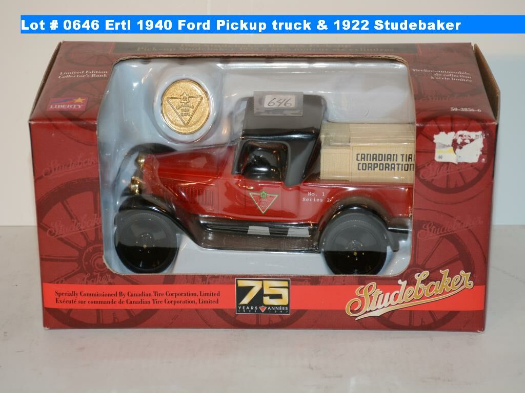 Ertl 1940 Ford Pickup truck, case, and 1922 Studebaker Big Six Pickup, Canadian Tire