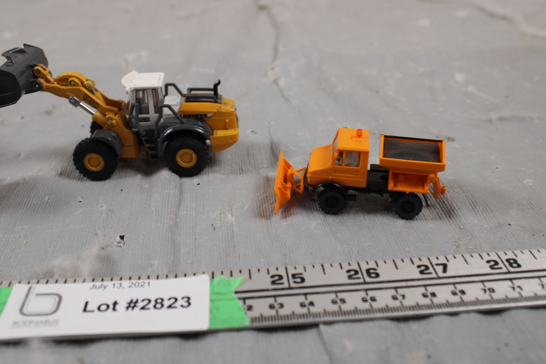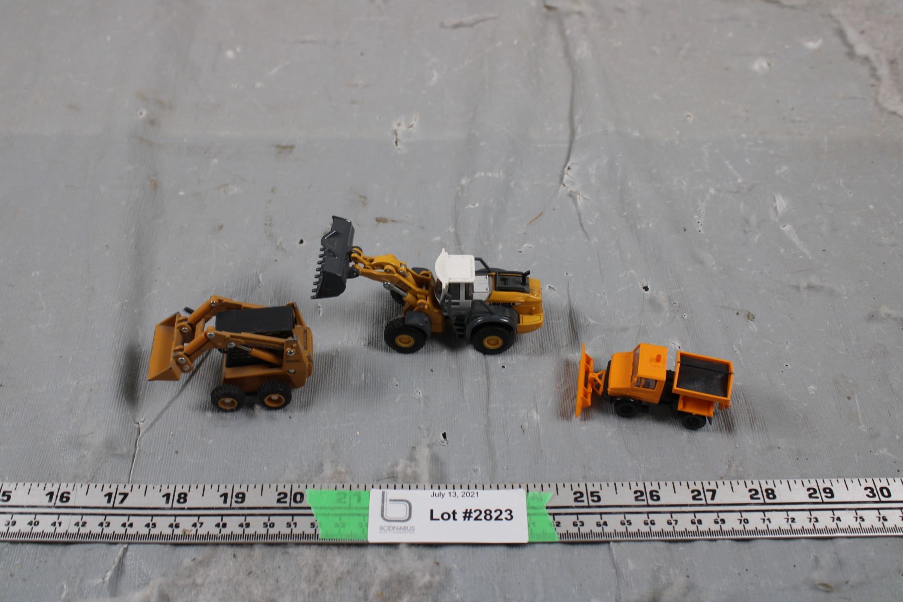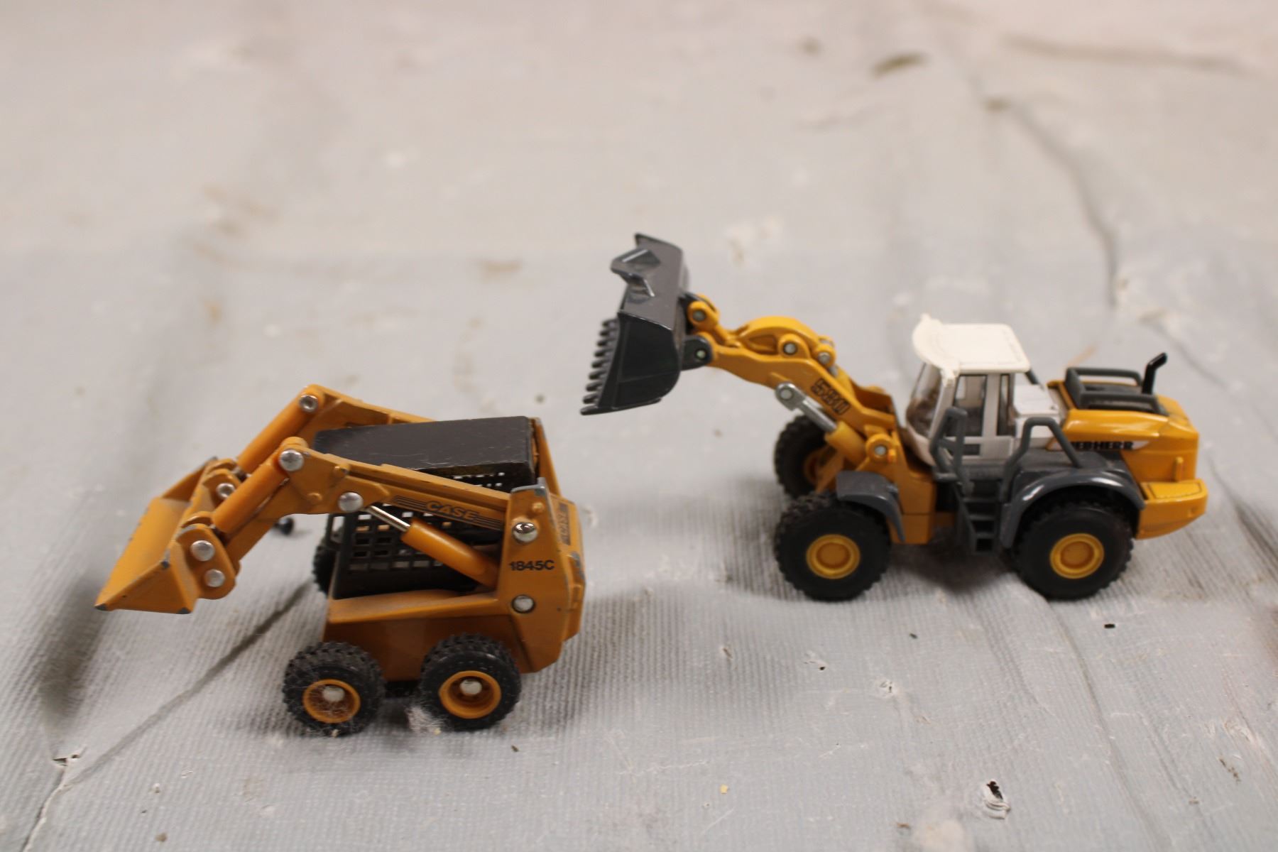 Ertl Case Bobcat (diecast) + Siku Loader (diecast) + Wiking mini-plow (plastic)