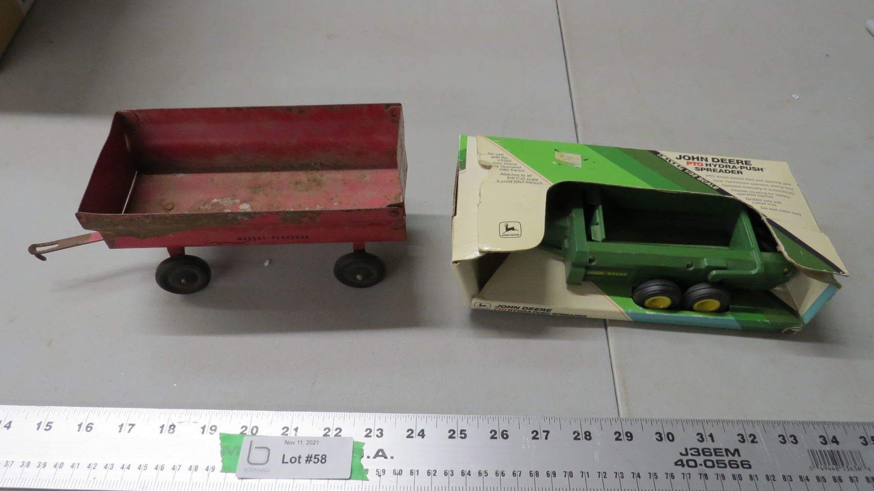 Ertl J.D spreader (in box) + massey ferguson trailer