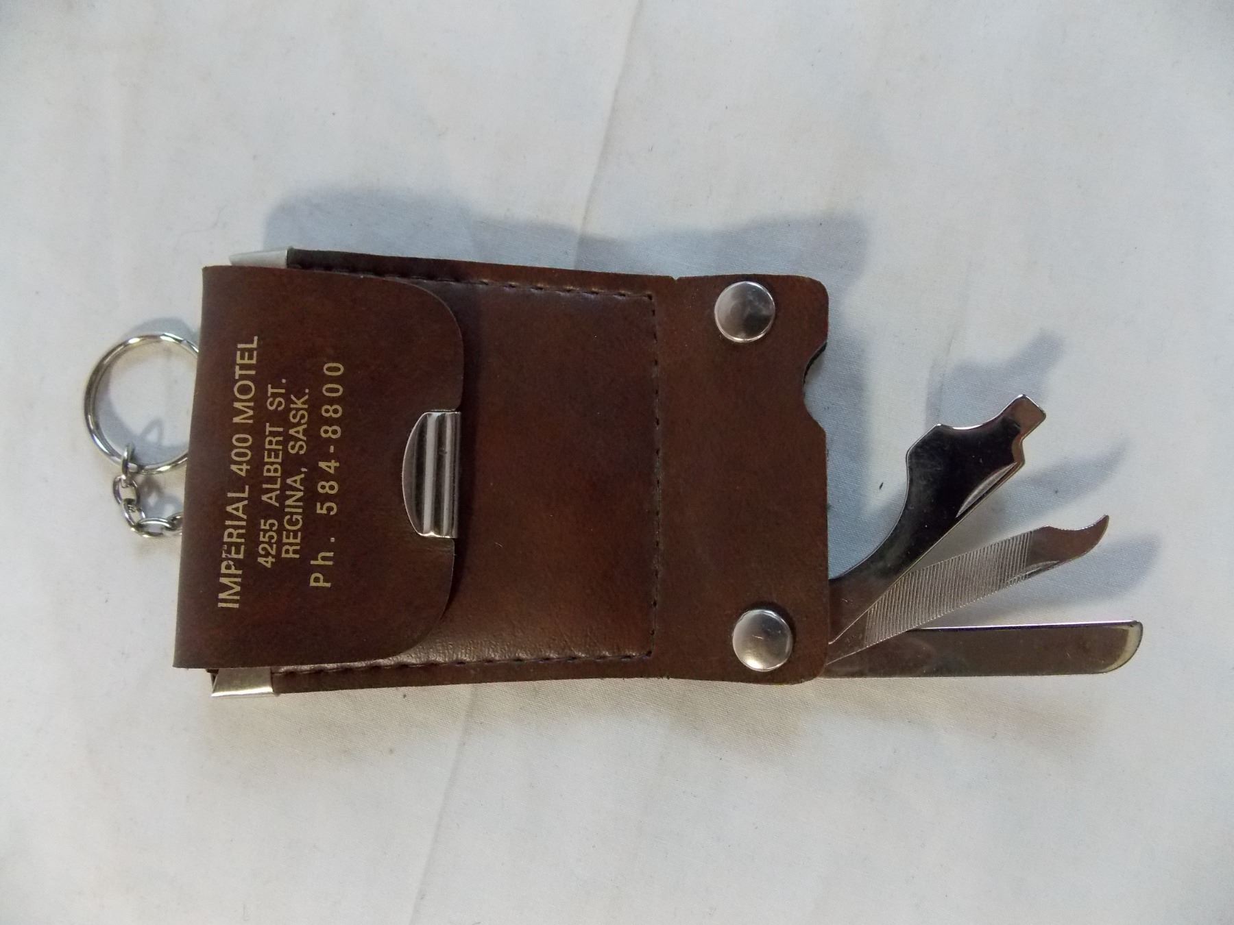 Esterbrooks Pen stand with vintage fountain pencil + Imperial Motel keychain with pocket knife built in - Regina, SK