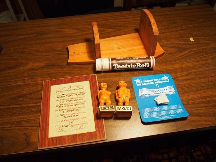 Eve And Adam Statues, Wall Pieces, Genuine Piece Of Arizona Memorial, Tootsie Roll Crayons