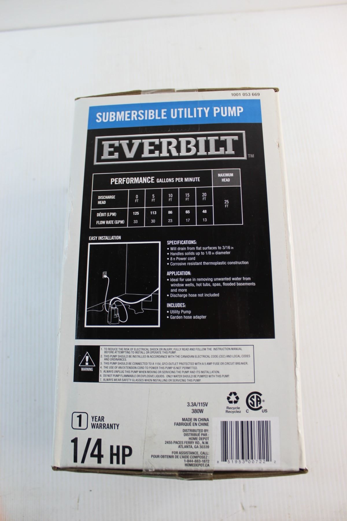 Everbilt 1/4 HP Submersible Utility Pump - Factory Sealed