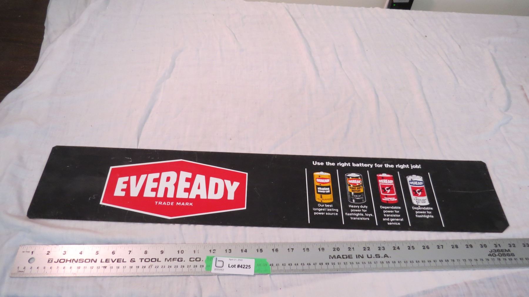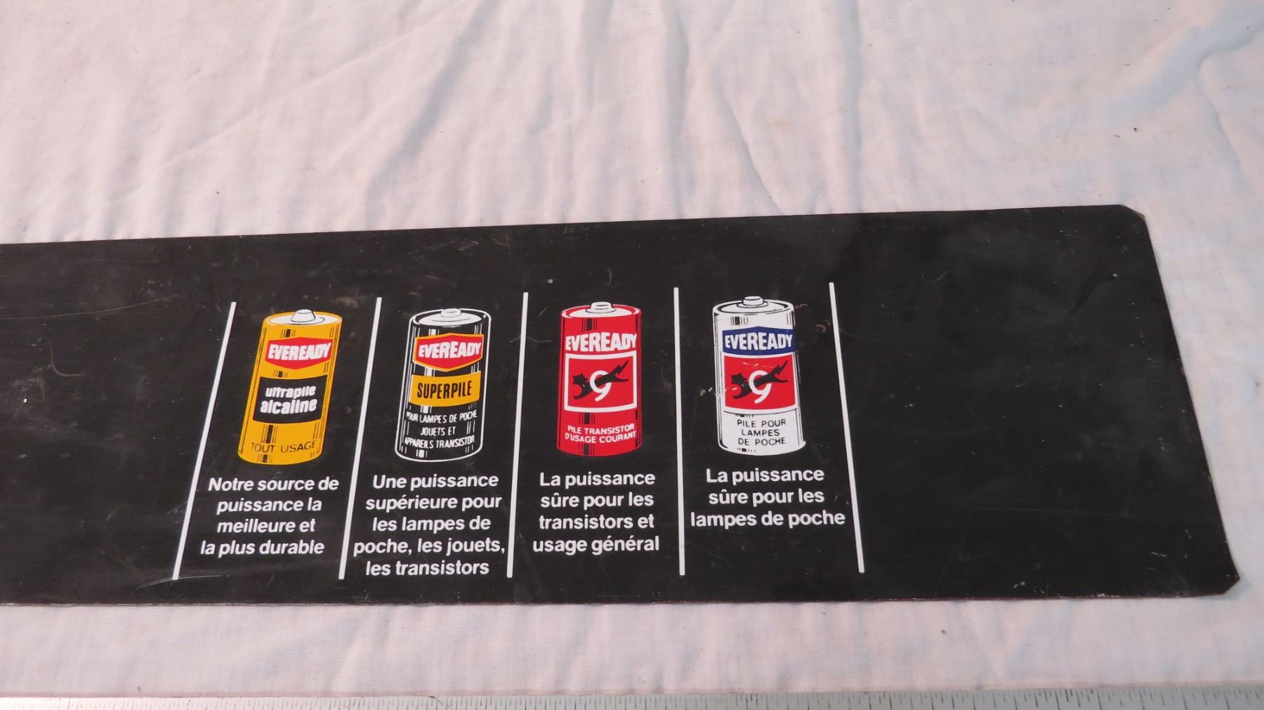 Eveready battery - metal sign - 33x6 (double sided, french + english)