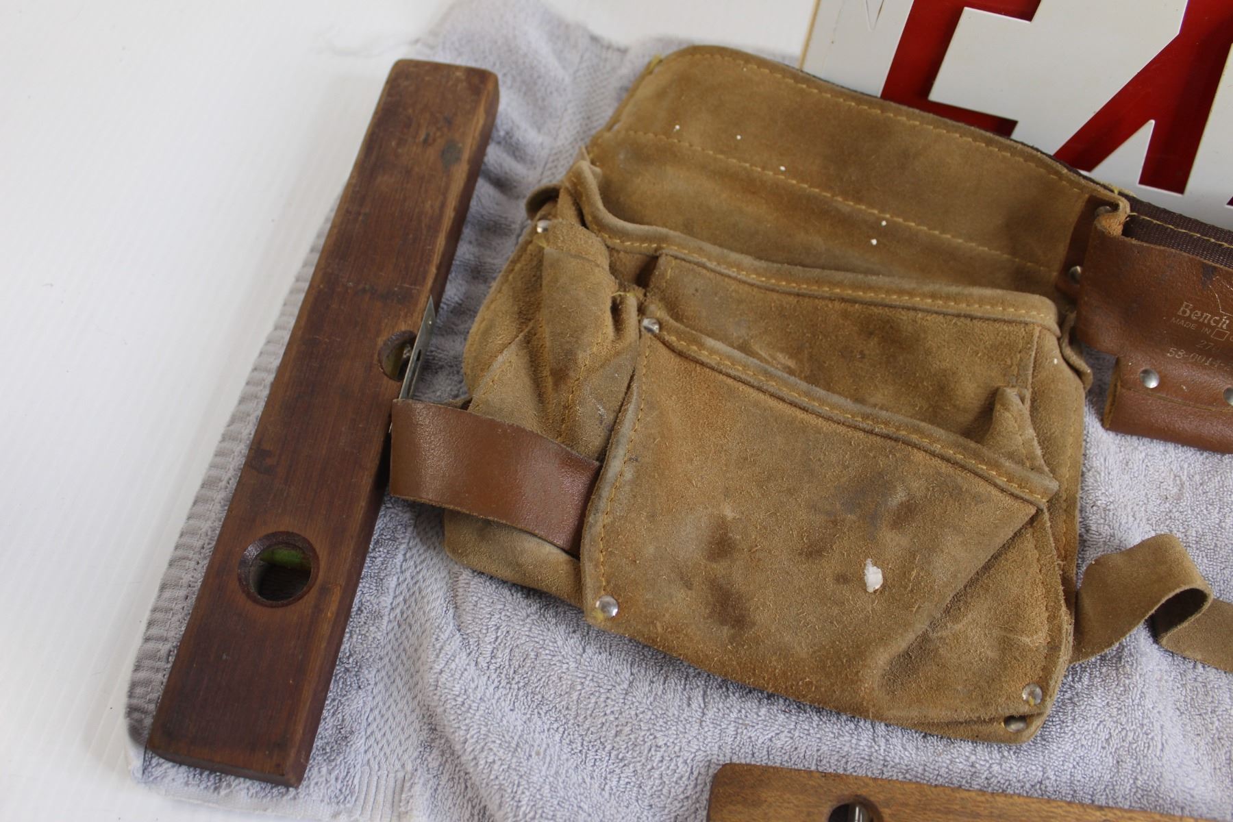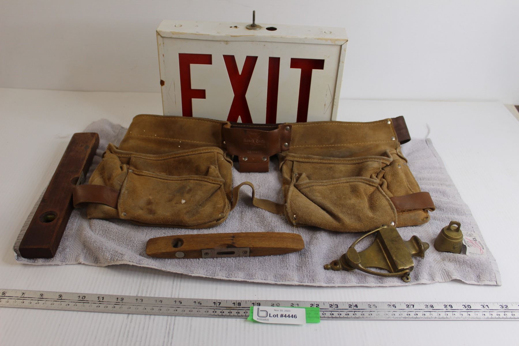 Exit Sign, Carpenter's Tool Belt, (2) Levels, Brass Door Knocker