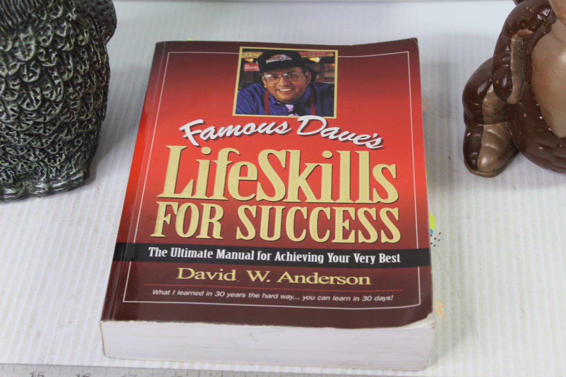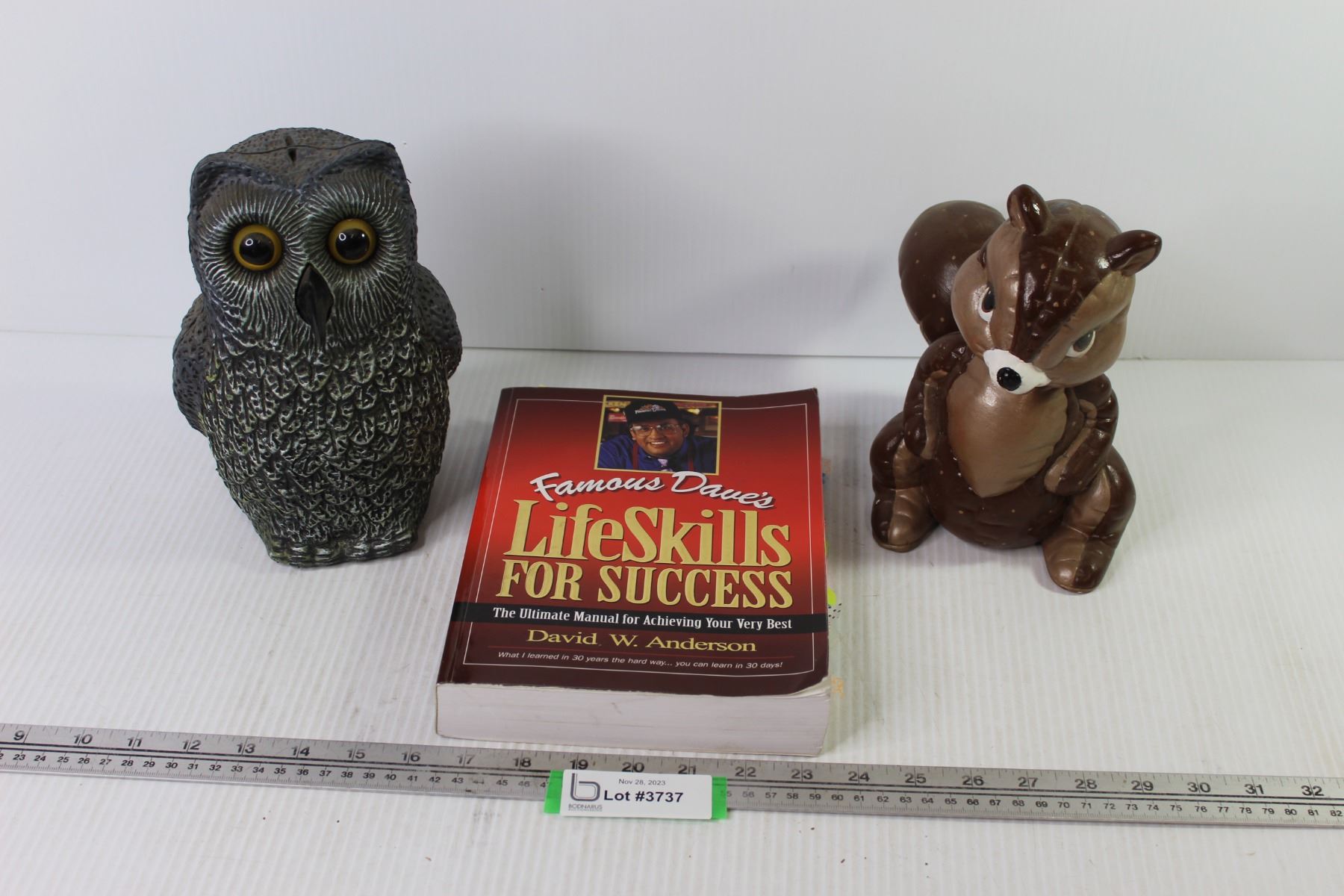 Famous Daves Life Skills Book - Plastic Owl - Ceramic Squirrel