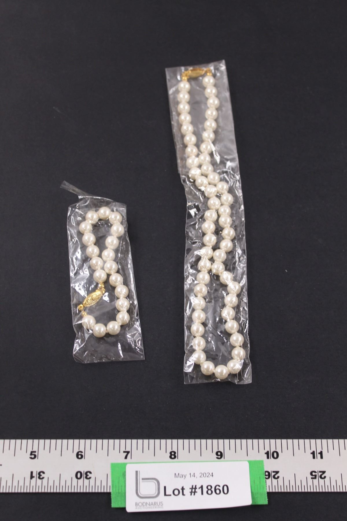 Faux Pearl Necklace & Bracelet - (New in Package)