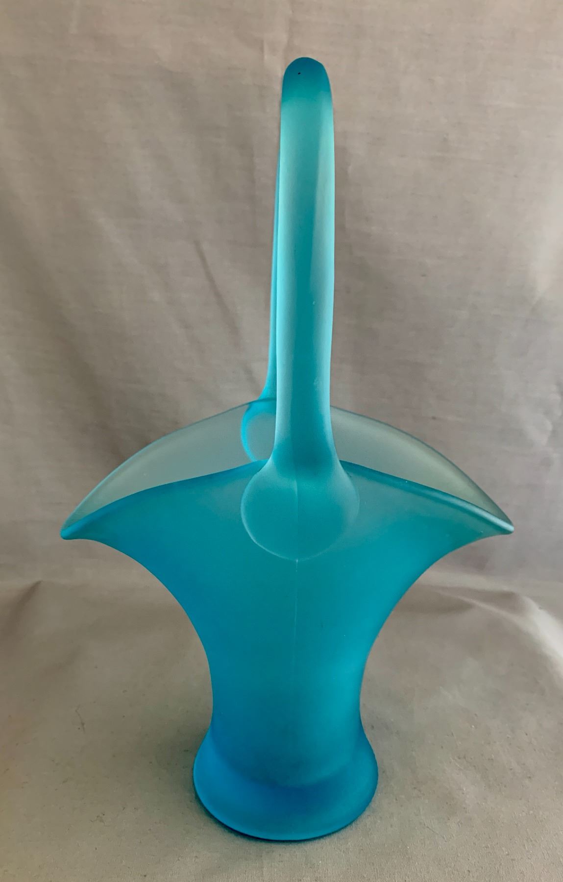 Fenton's 1940s Celeste Blue Large-Sized Handled Frosted Art Glass Basket