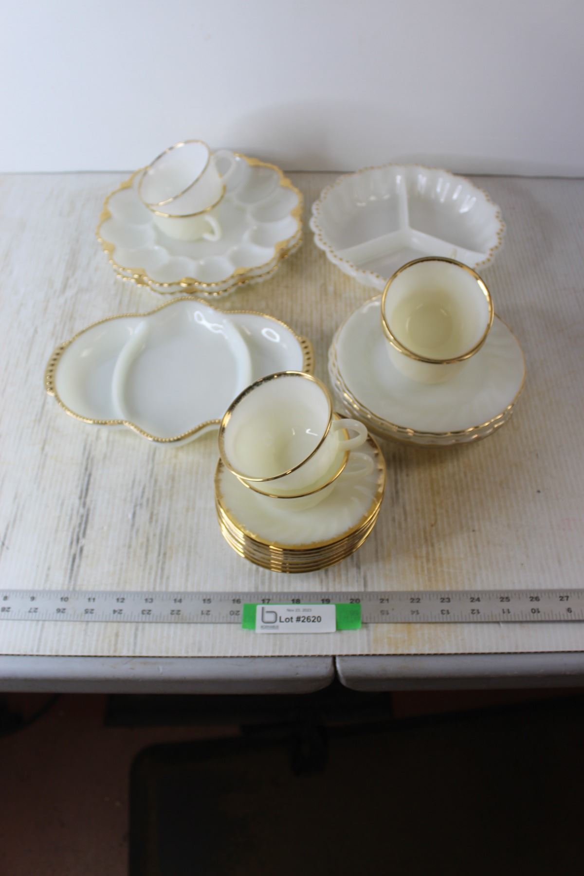 Fire King Dishes - (2) Egg Platters, Round Divided Dish, Oval Divided Dish, (2) Bowls, (2) Sandwich Plates, (7) Saucers, (6) Tea Cups