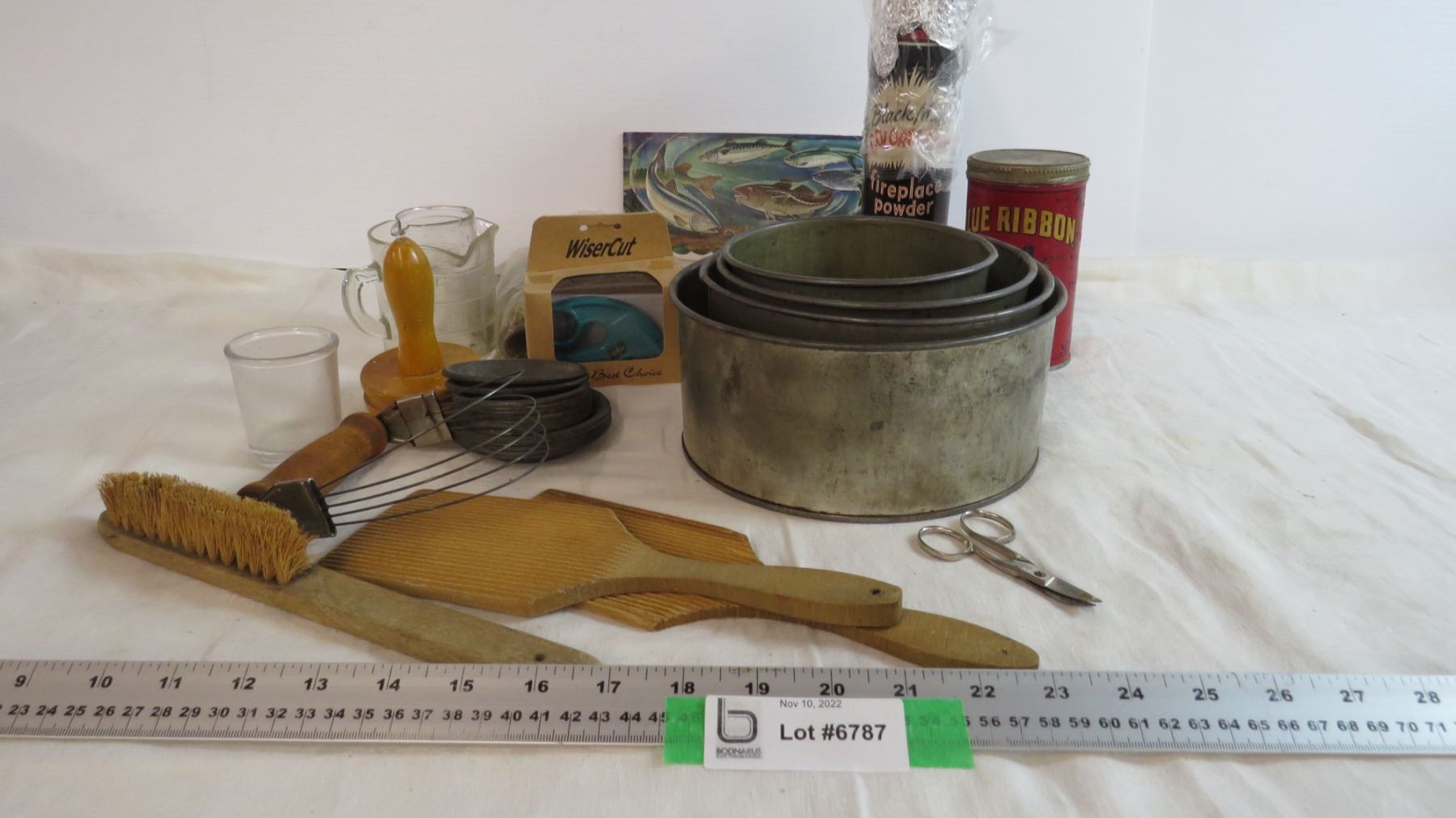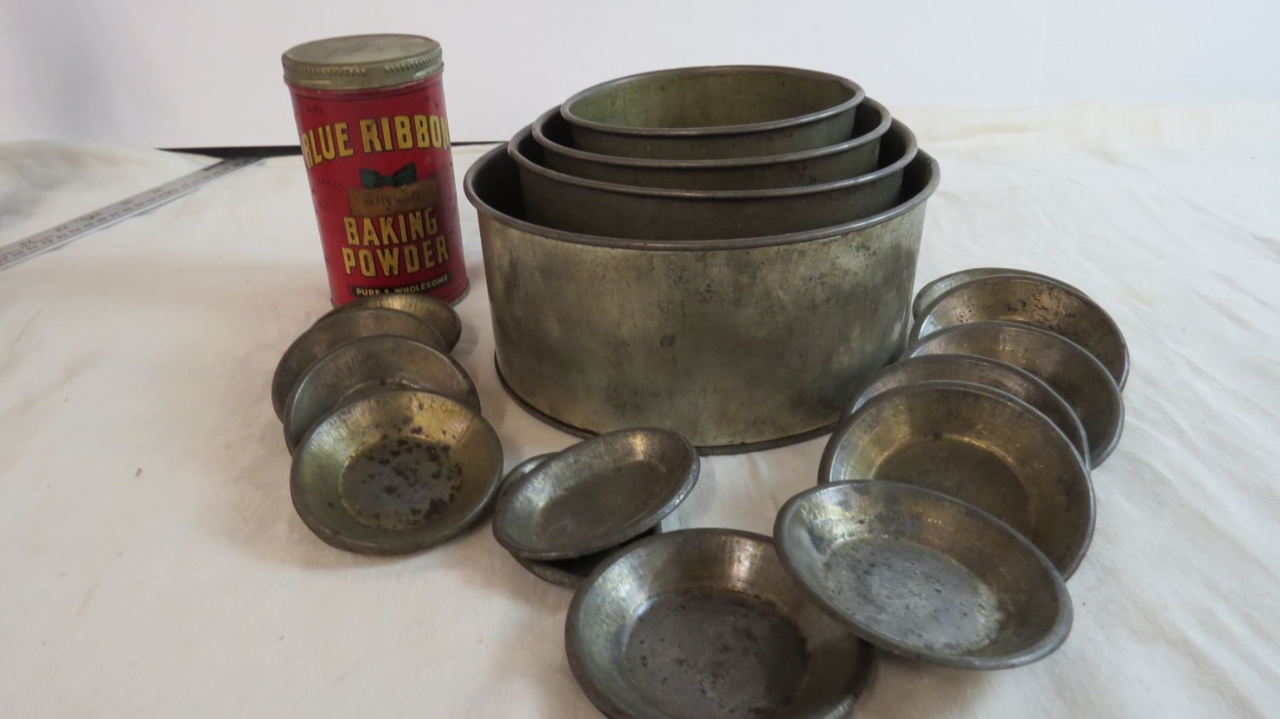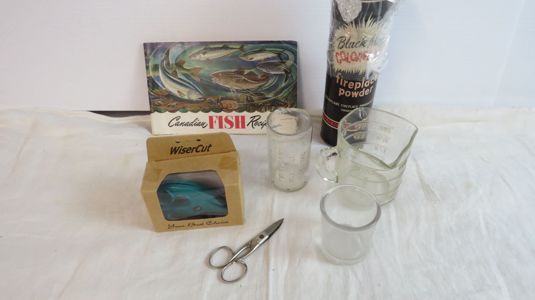 Fire Place Powder - Vintage Blue Ribbon Tin - Vintage Baking Pans - Spats - Fishing Recipes