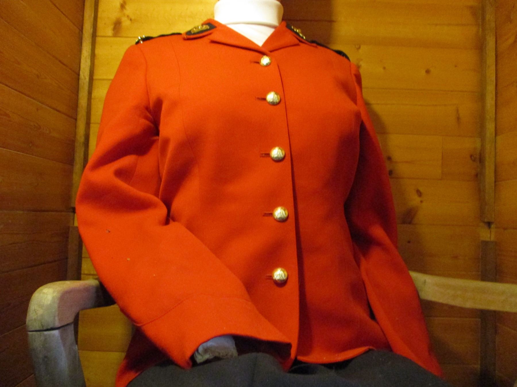 First RCMP female member uniform + wooden office chair - mannequin sits 48" tall