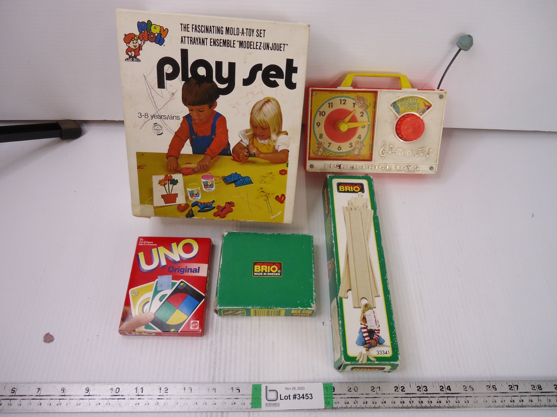 Fisher Price Toy, PayDoh, UNO, and Brio Blocks