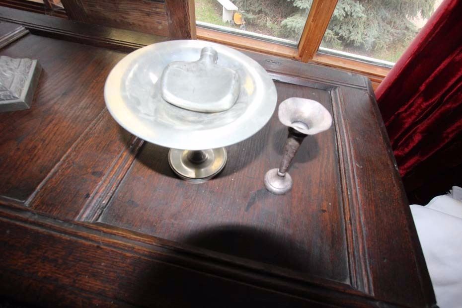 Flask, Vase, Dish (Stemmed Silver Pieces)