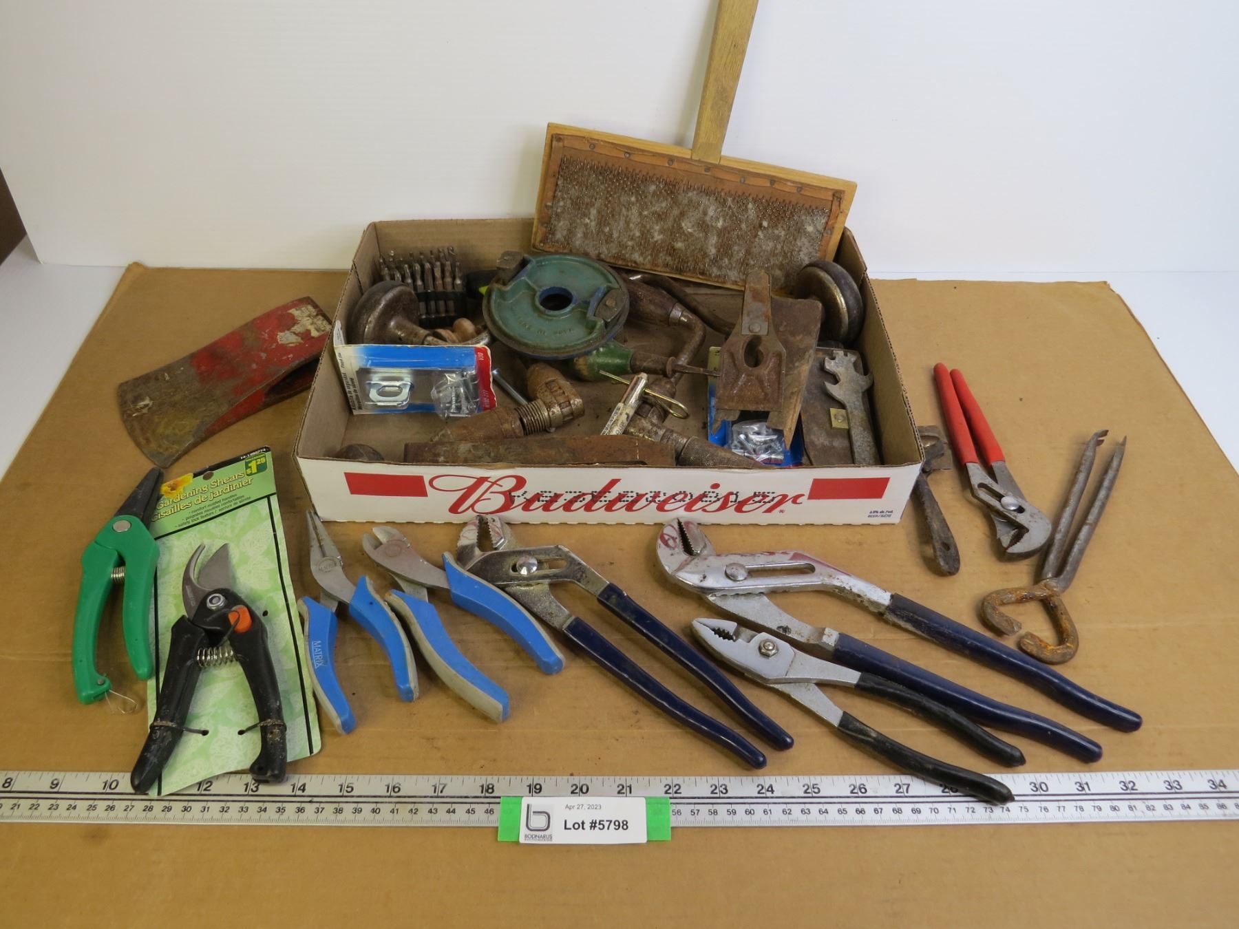 Flat of Tools - Vintage Wood Plane Parts - Axe Head - Vintage Tools