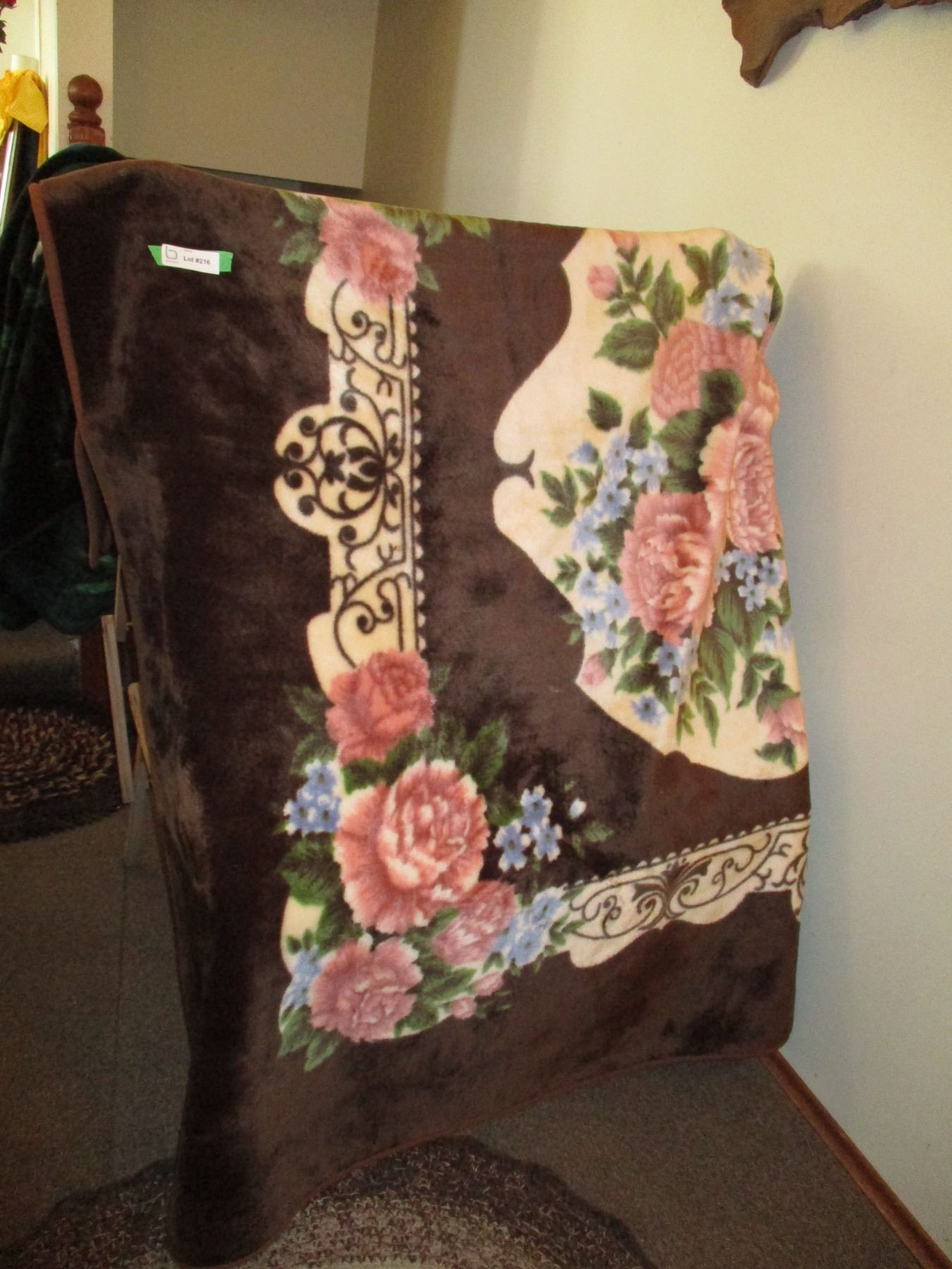 Fleece Blanket from Korea (acrylic pile) - Roses - 84" x 77"