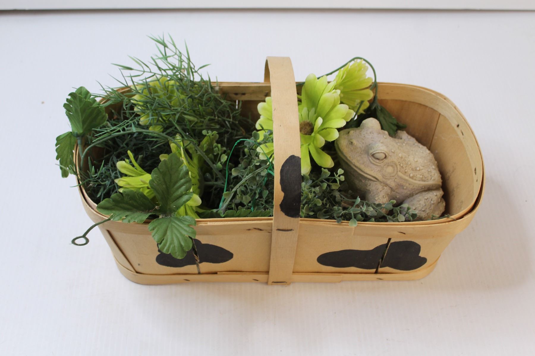 Flower Basket With Frog Figurine / No Smoking No Idle Sign