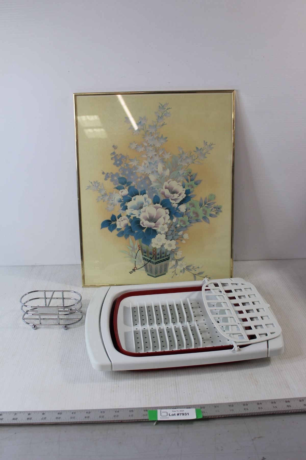 Flower Framed Art - 16 1/4" x 20 1/4", Drainer Rack Drying Dishes Rack, Beekman 1802 Chrome Soap/Lot