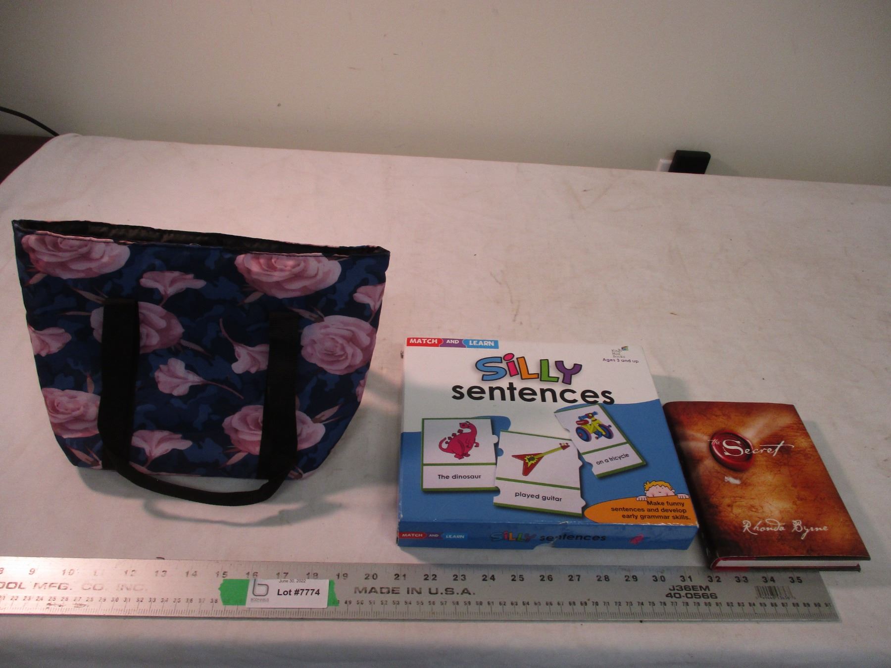 Flowered purse, secret book, silly sentences game