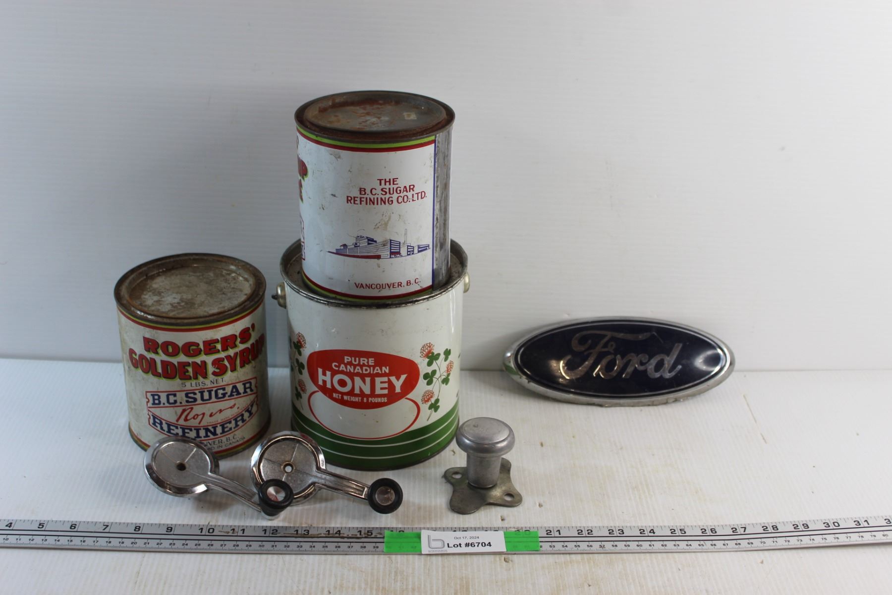Ford Emblem, Vintage Tins 1 Pair Door Window Crank Handle Set and Door Knob