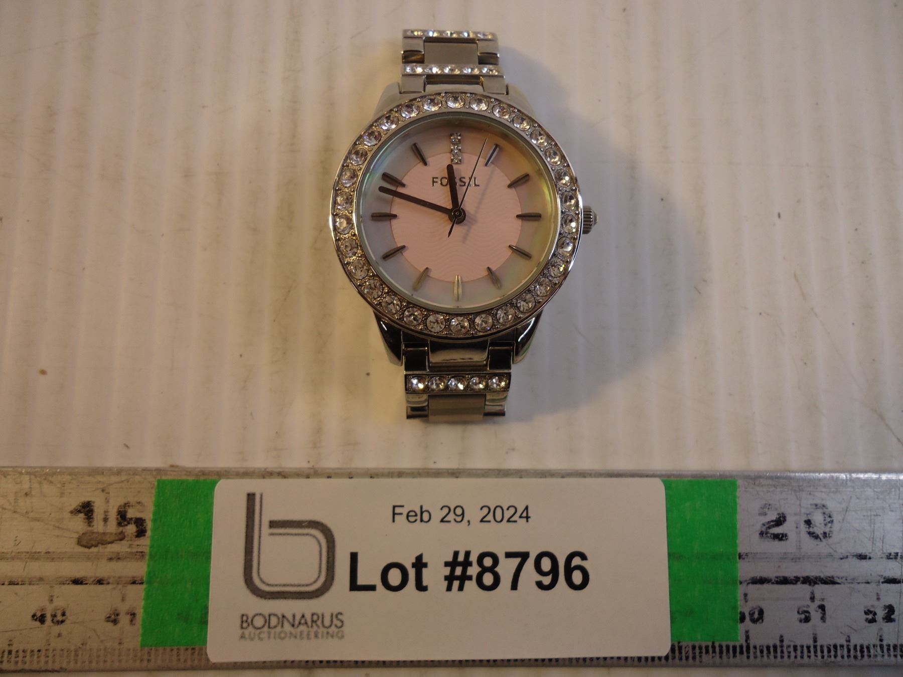 Fossil Ladies Silver Watch with Rhinestones- new battery
