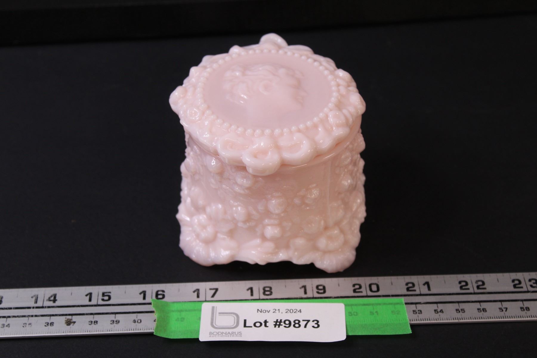 Fostoria Pin Milk Glass Cameo Lady Jewelry Dish