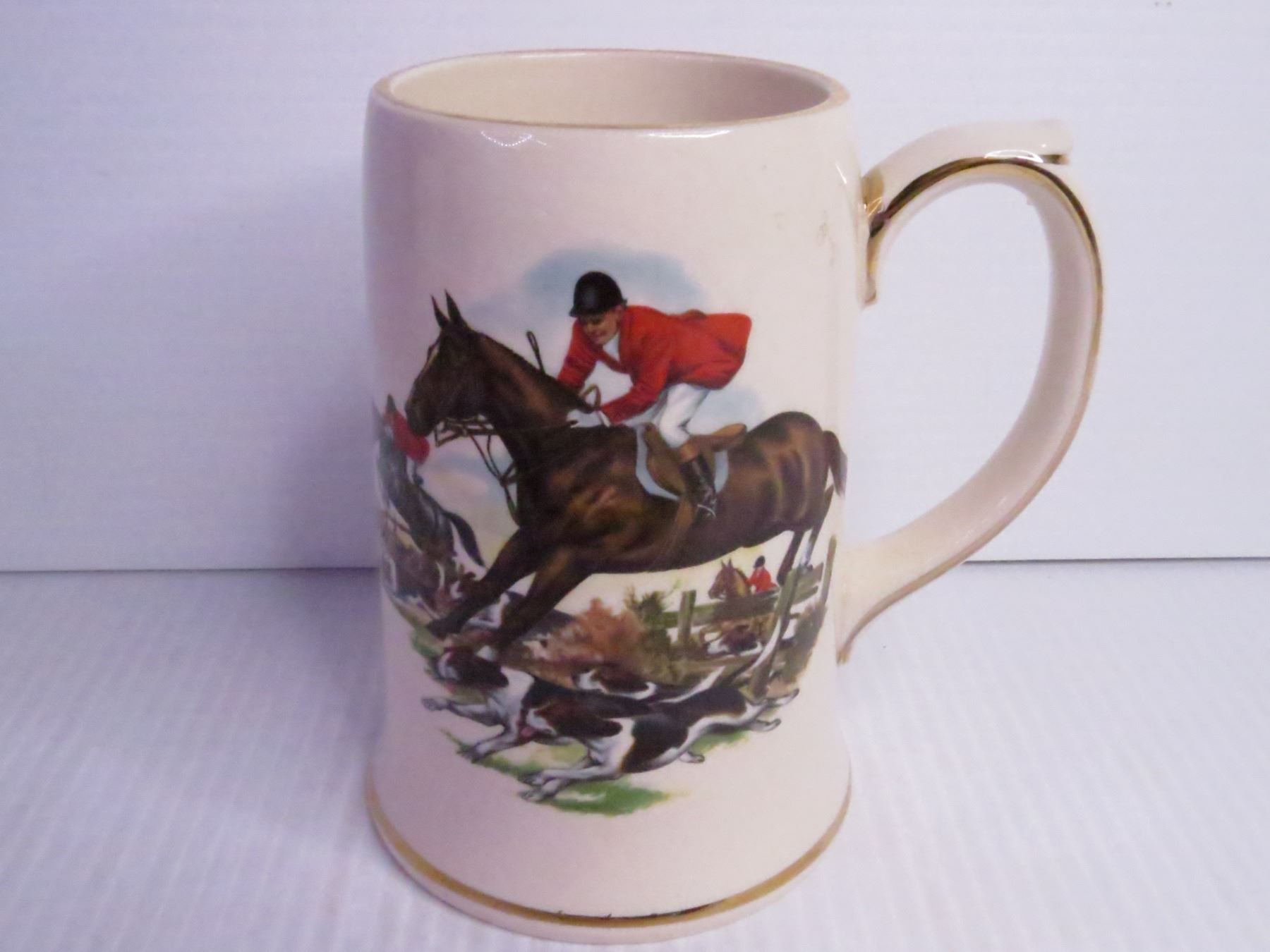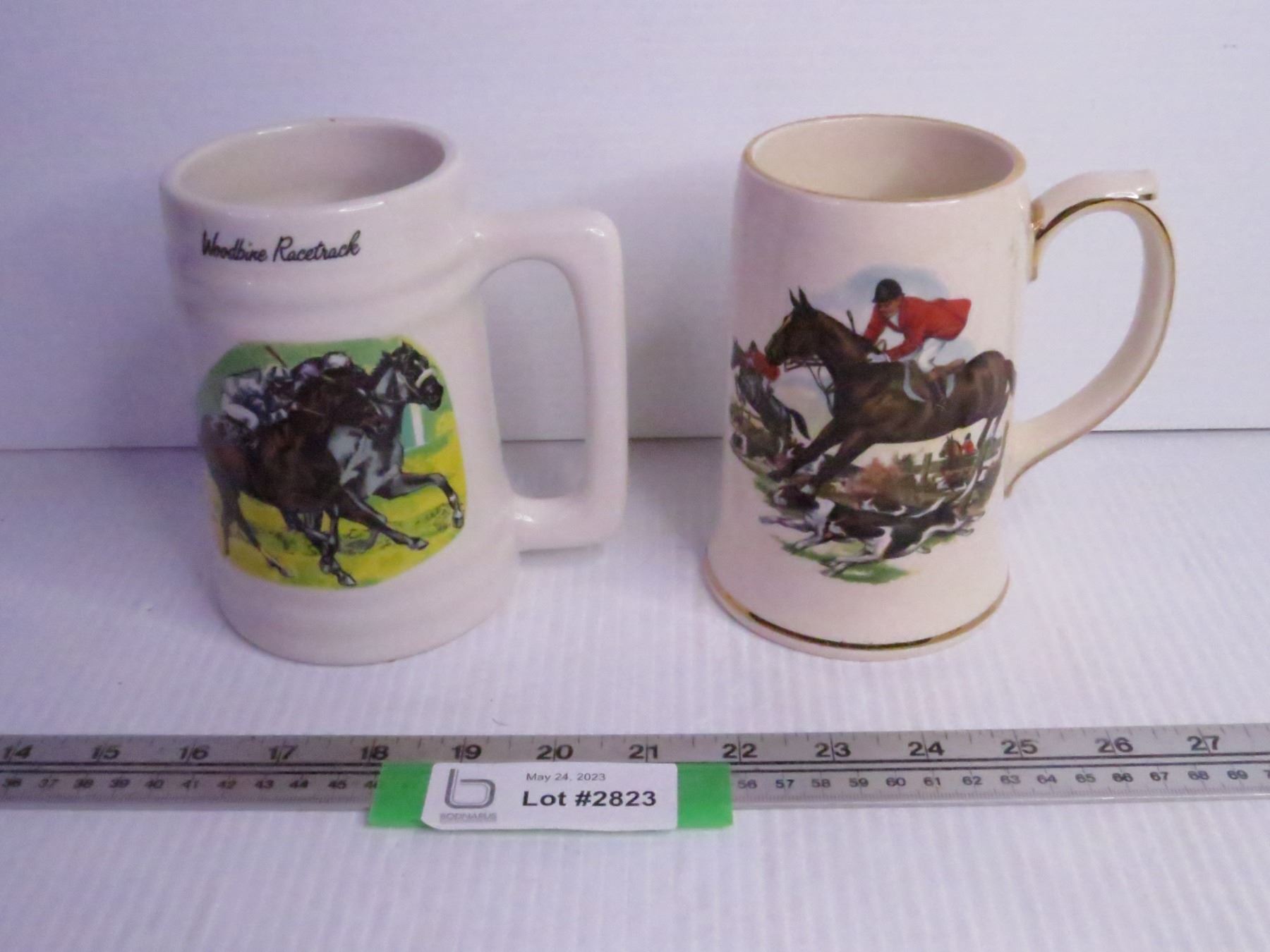 Fox & Hounds Gold Rimmed Tankard (Sadler England) - Woodbine Race Track Tankard (Toronto Ont.)