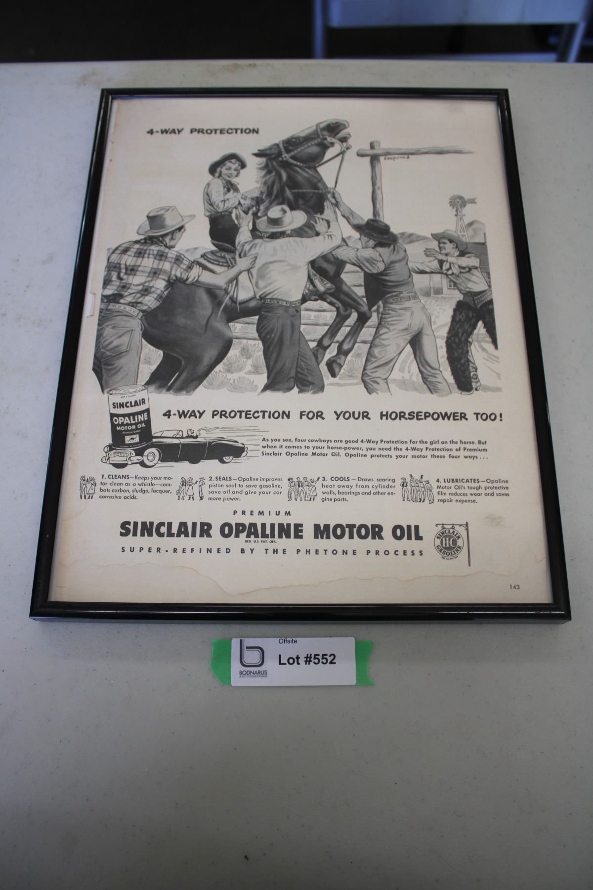 Framed Advertisement - Sinclair Horsepower Motor Oil