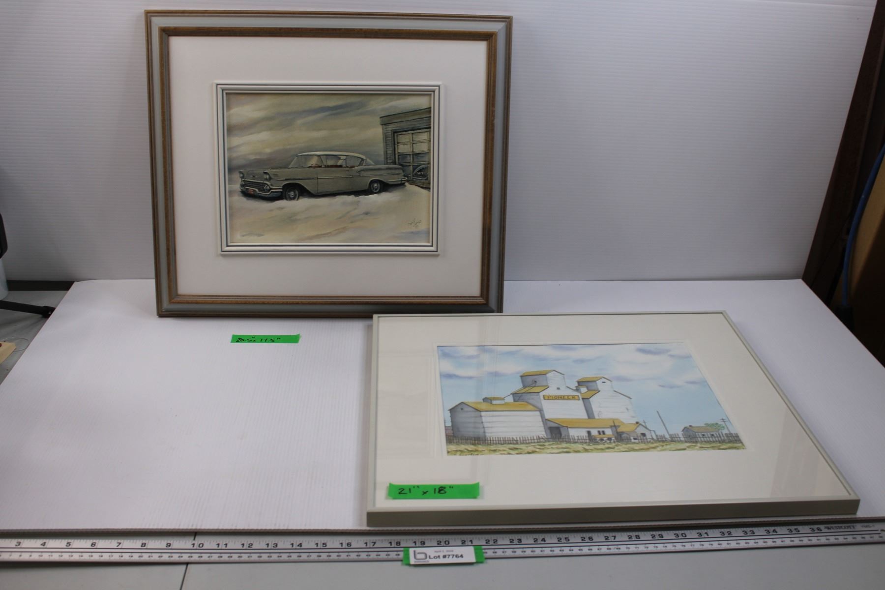 Framed Art Work - 1958 Bel-Air (Don Panko Original Painting 20.5"x17.5") & Pioneer Elevator