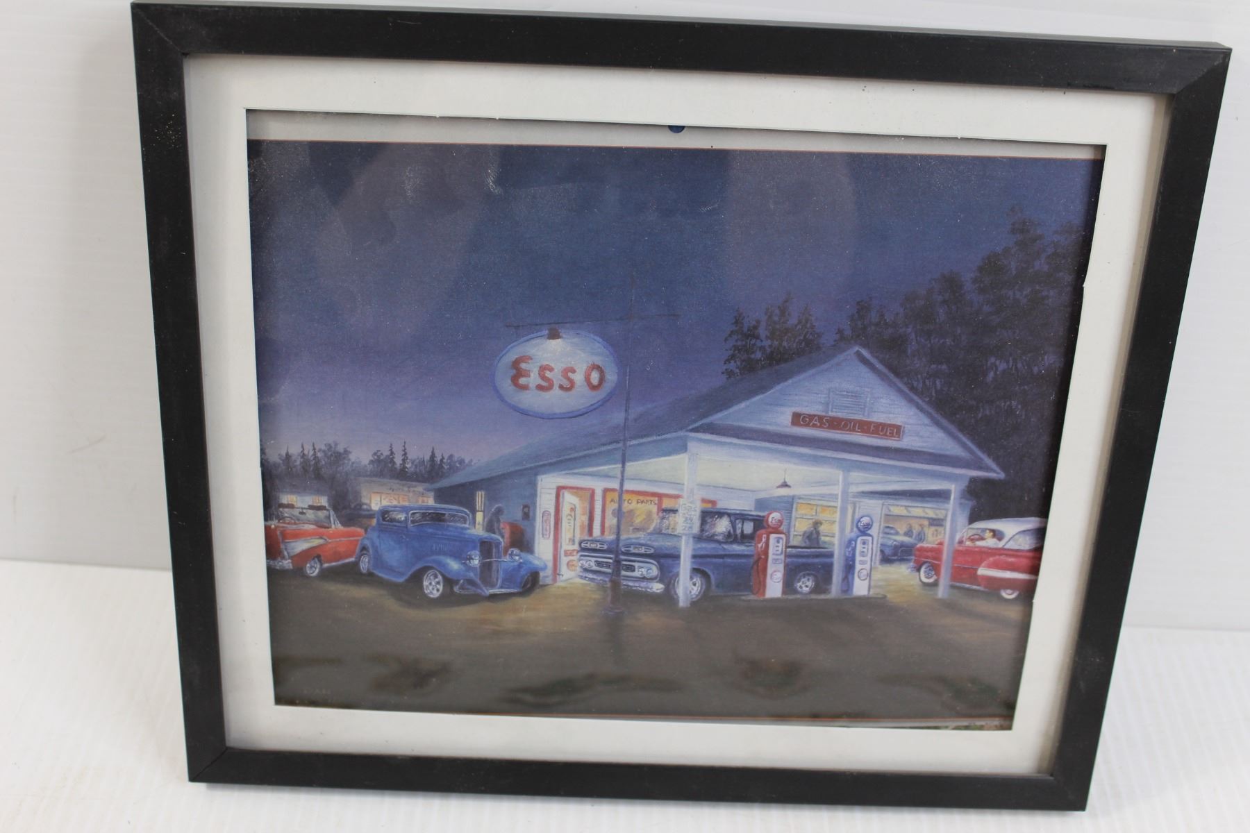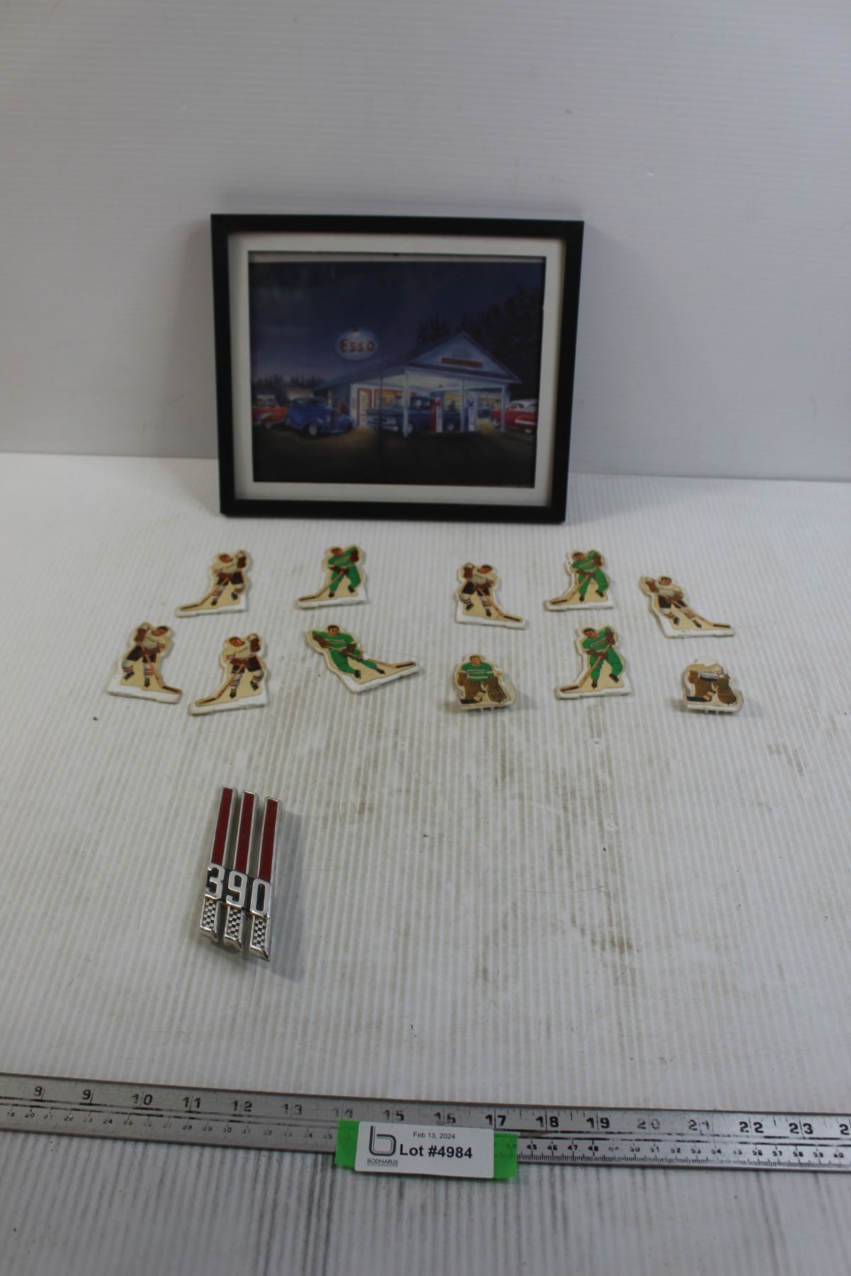 Framed Esso Print - 11 1/2" x 9 3/4", (11) Table Hockey Figurines, Ford 390 Car Emblem