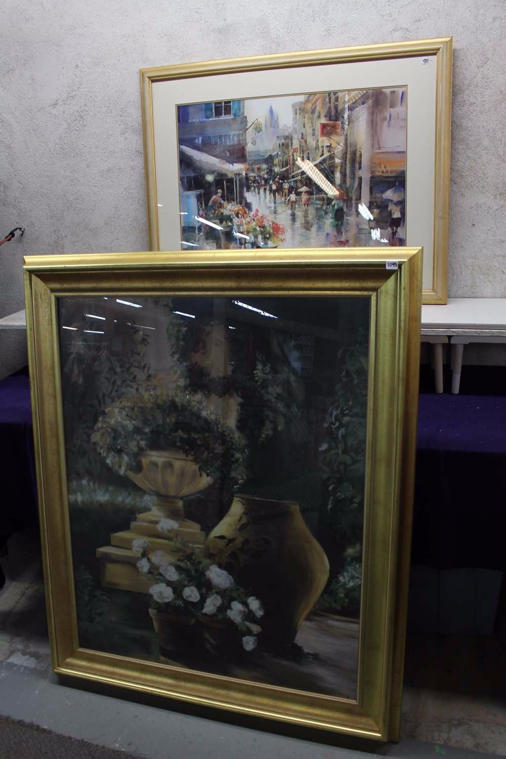 Framed Flower Decoration Painting (40”x48”) & Framed Painting “After The Rain” (37”x30”)