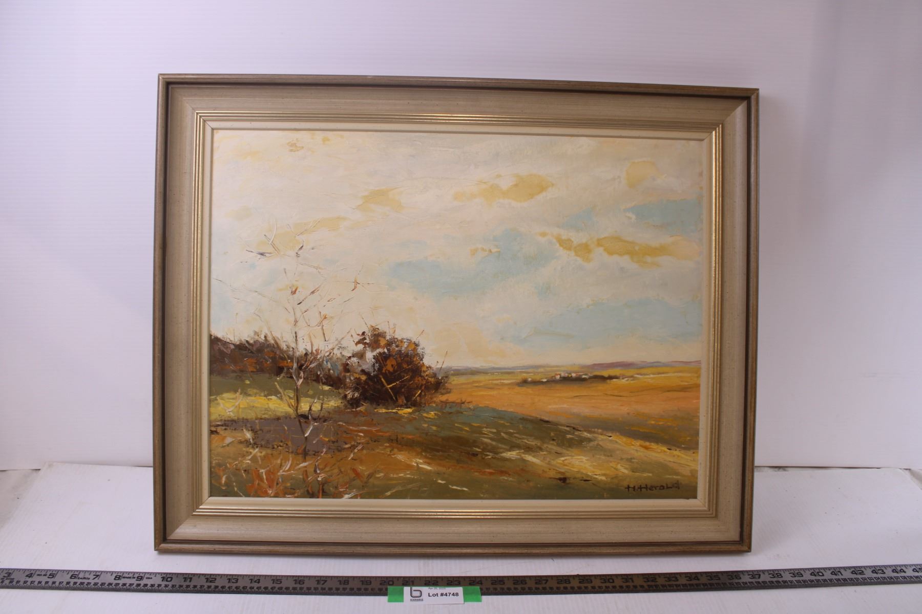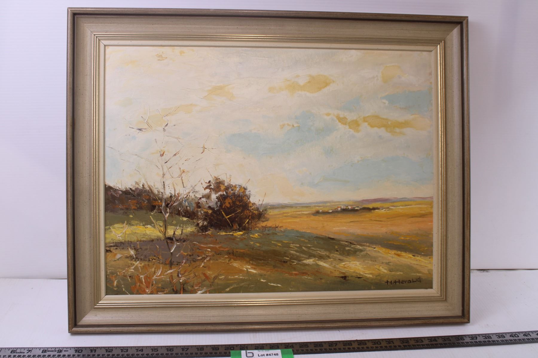 *Framed Hans Harold Oil Painting(clouds over the Prairie)signed on back-outside measurements-28.5x22.25/inside 17.5x23.5