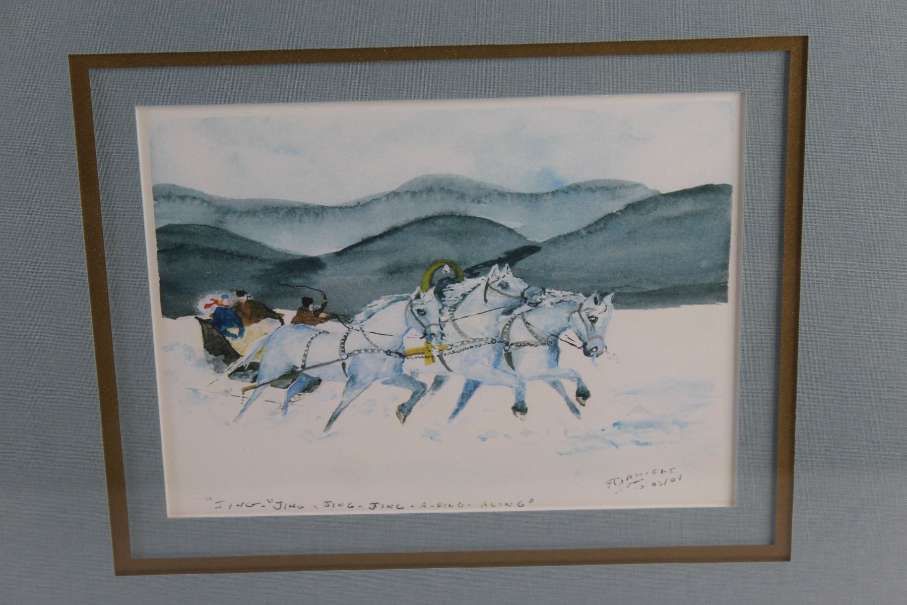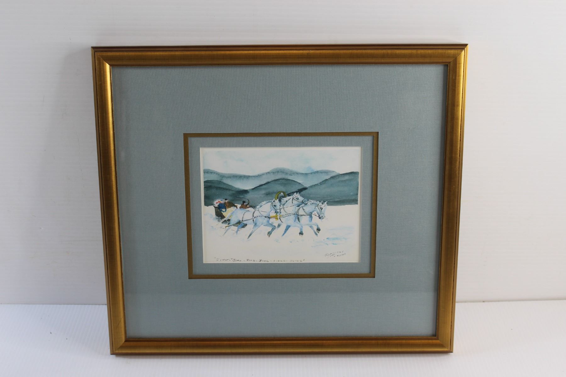 Framed Horse-Drawn Sleigh Art Print 16'' x 14''
